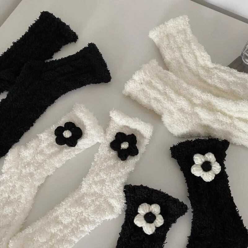 フレンチスイートホットガール暖かいコーラルぬいぐるみ靴下秋と冬フラワーパイルロングソックス下着 大人ガーリー スウィート キュート カジュアル オータム 秋物 ウィンター 冬物 タイツ ストッキング フラワーデザイン