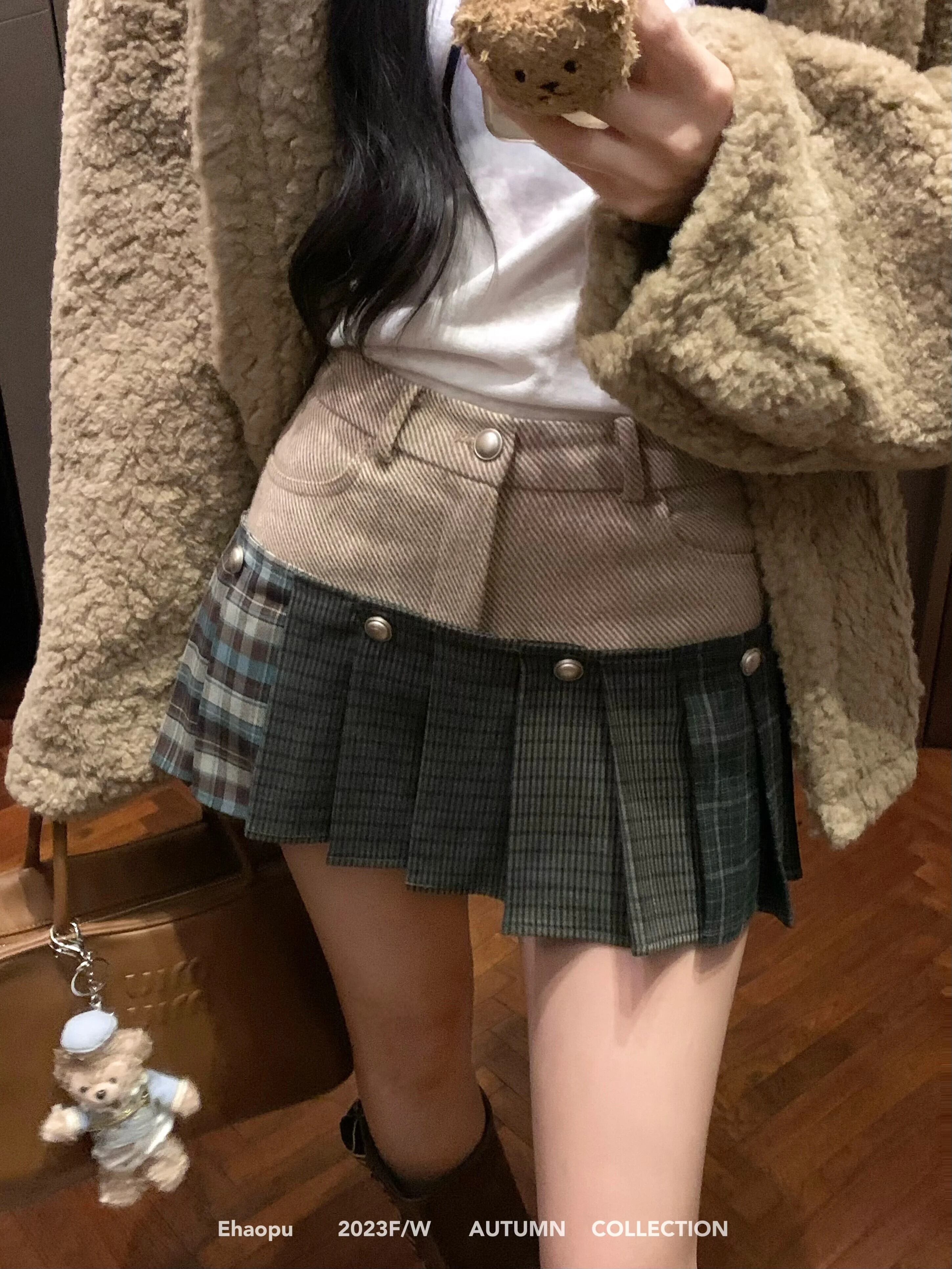 スタイルホットガールレトロツーピースチェック柄スカート秋と冬取り外し可能プリーツスカートショーツ A ラインスカート オータム 秋物 ウィンター 冬物 ブルマー Aライン
