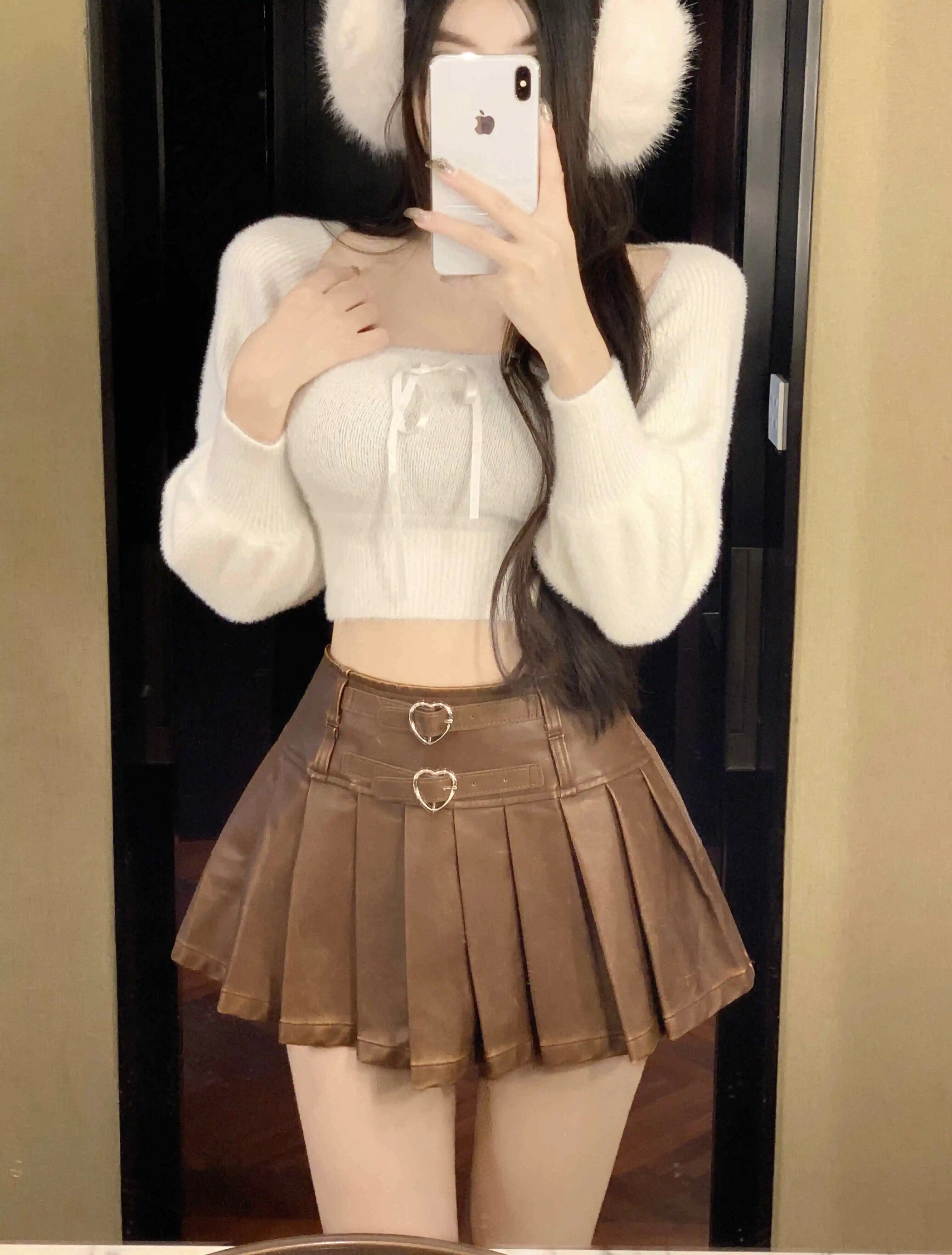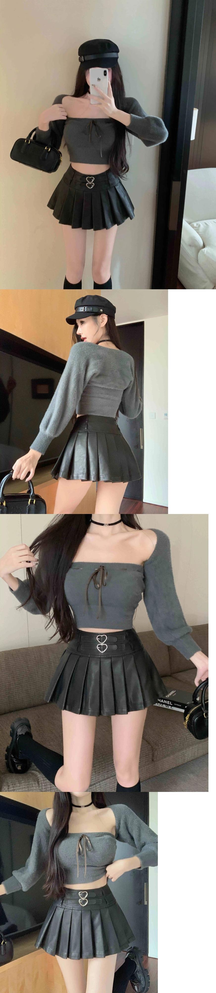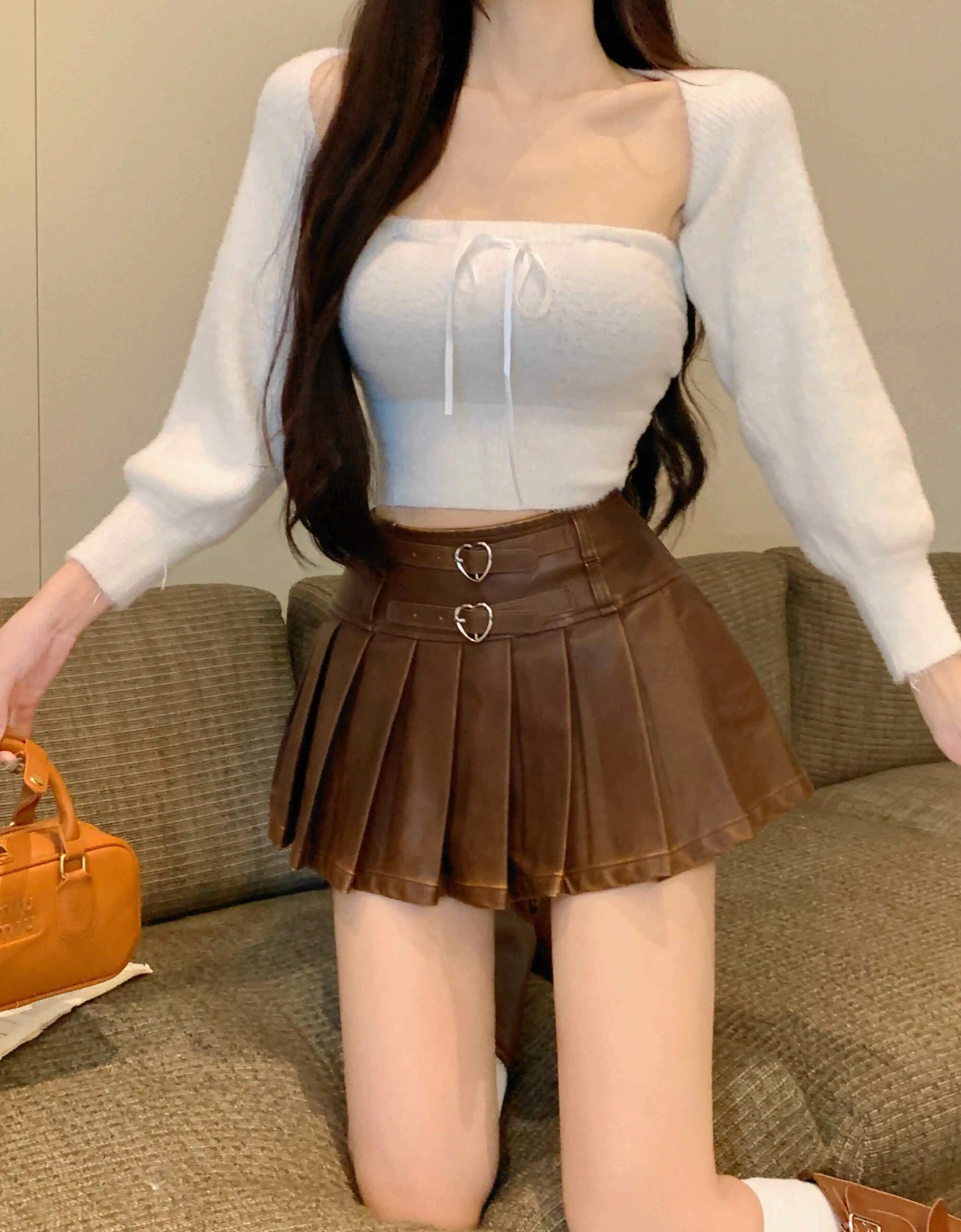 アメリカンレトロホットガール Pu レザーショートスカート秋/冬ウエスト A ラインプリーツミニスカート オータム 秋物 ウィンター 冬物 Aライン