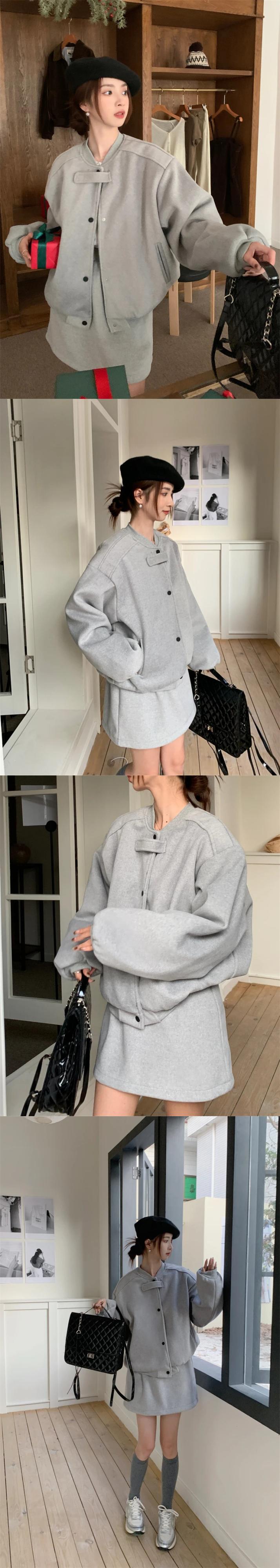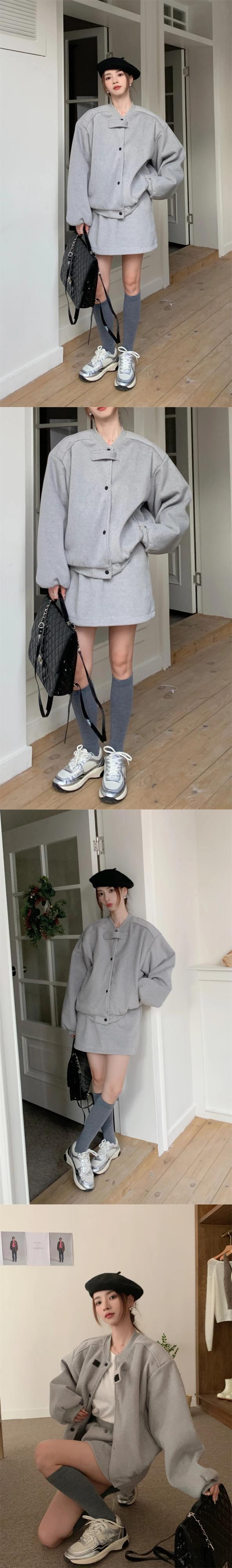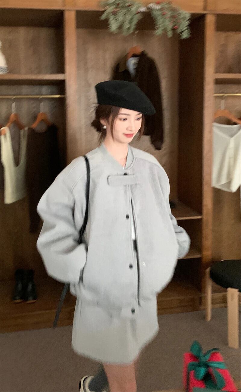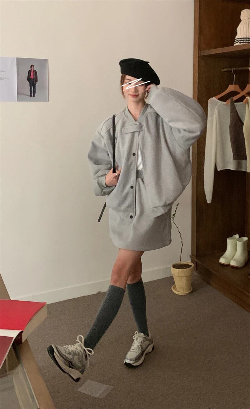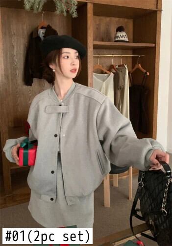 甘いホットガールスーツ秋/冬ルーズ肥厚野球コート A ラインショートスカート 2 点セット 大人ガーリー スウィート キュート カジュアル オータム 秋物 ウィンター 冬物 Aライン