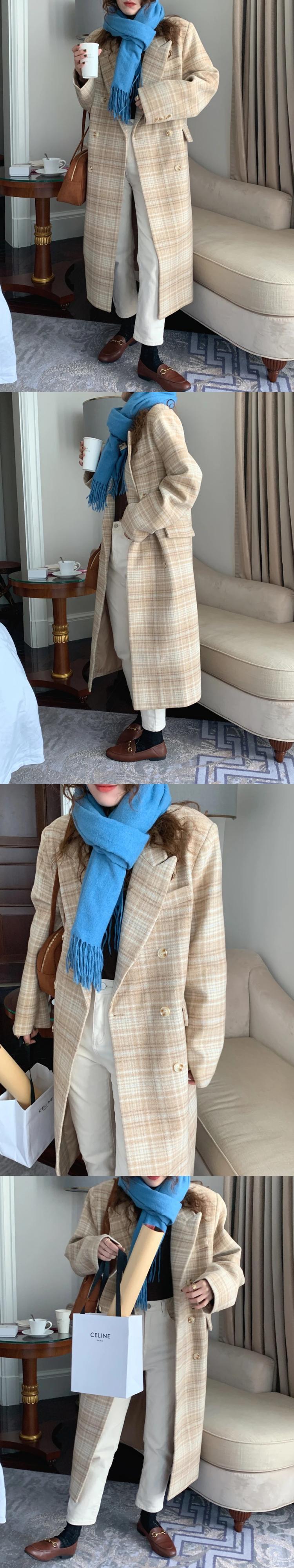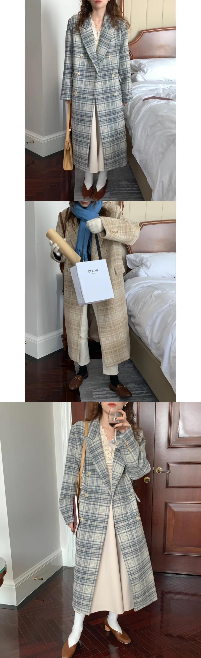 フレンチスイートガールプレッピースタイルロングスーツコート秋/冬ターンダウン襟チェック柄ウールコート 大人ガーリー スウィート キュート カジュアル オータム 秋物 ウィンター 冬物