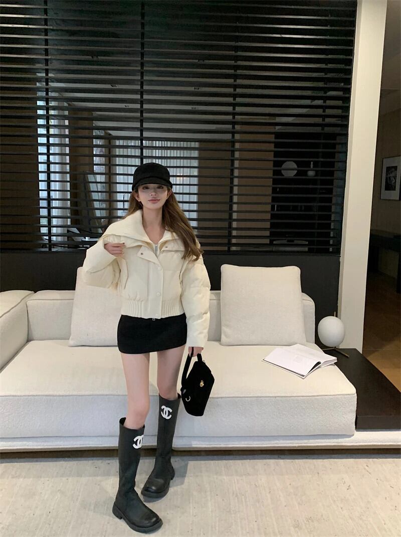 フレンチホットガールショートコットンジャケット冬ラペルダブルジッパー長袖ルーズパーカー ロング ウィンター 冬物
