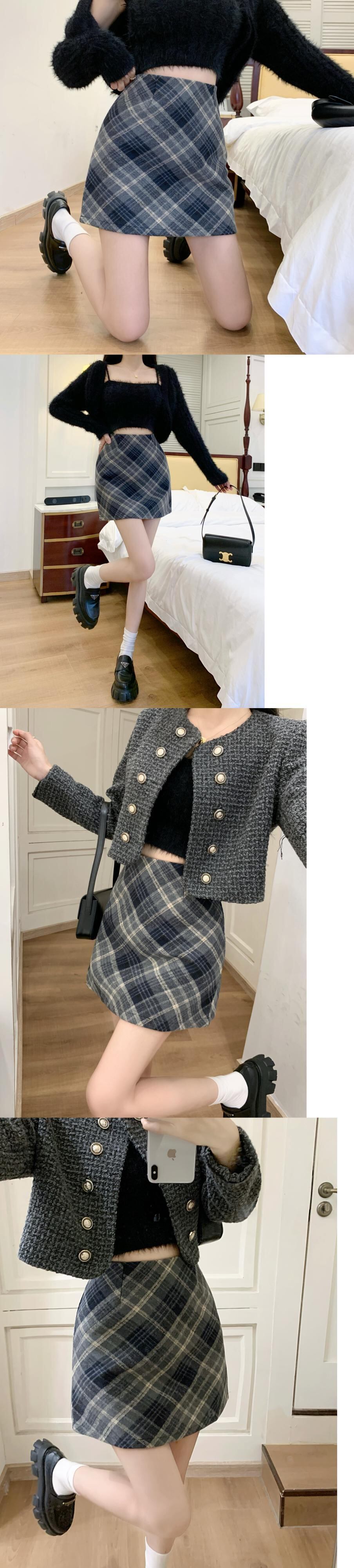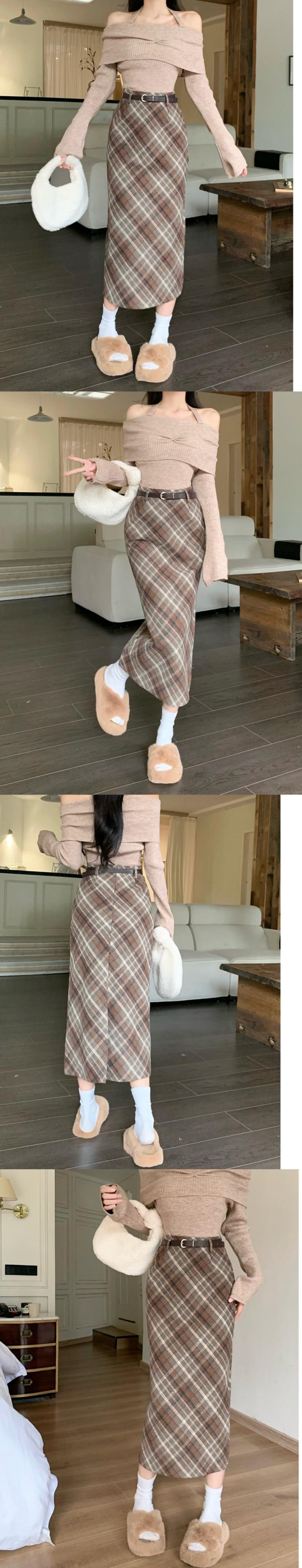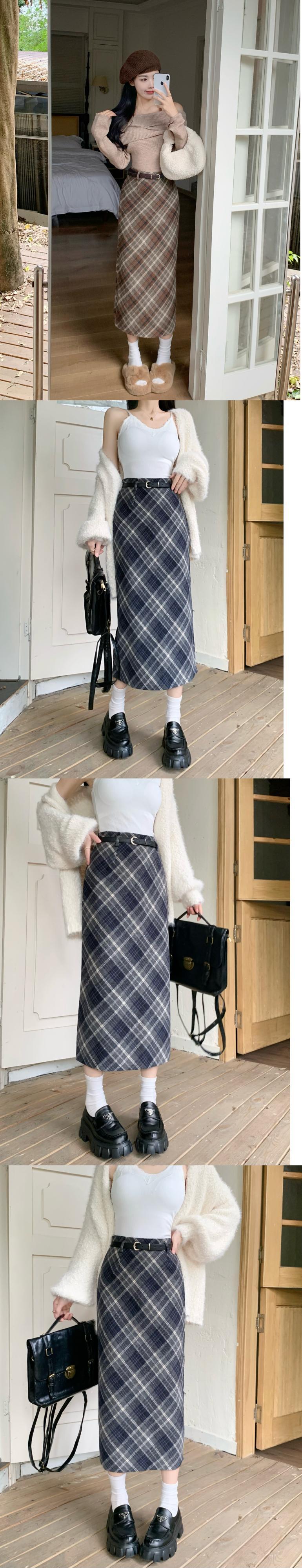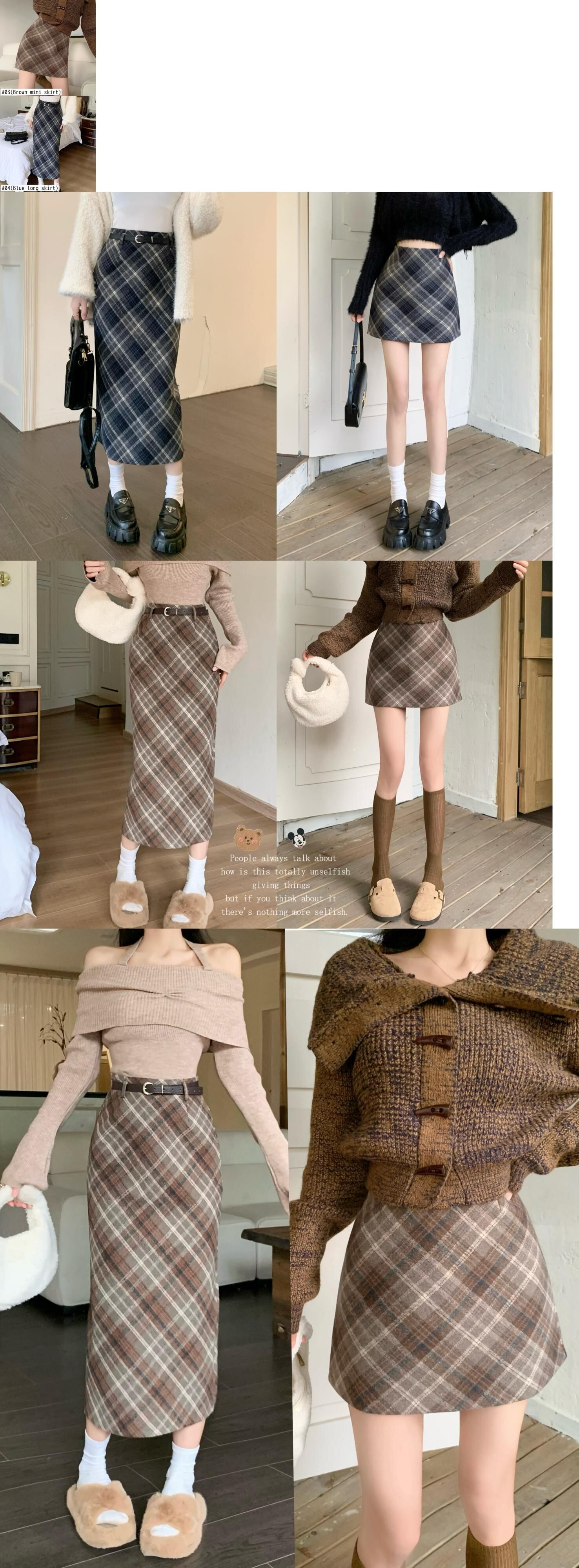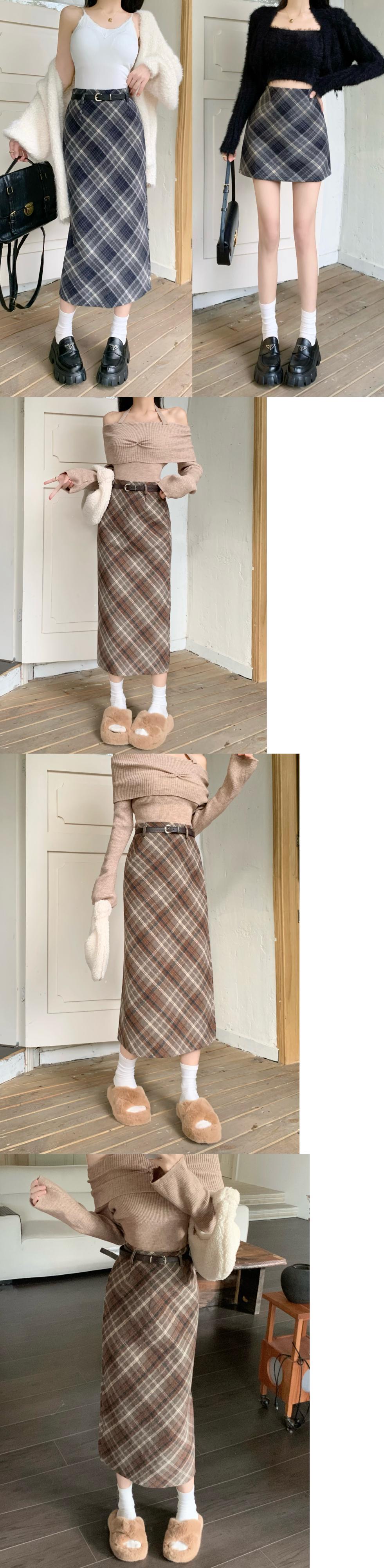 甘いホットガールチェック柄ラップヒップミニスカート秋/冬ウエスト A ラインロングスカート 大人ガーリー スウィート キュート カジュアル オータム 秋物 ウィンター 冬物 Aライン