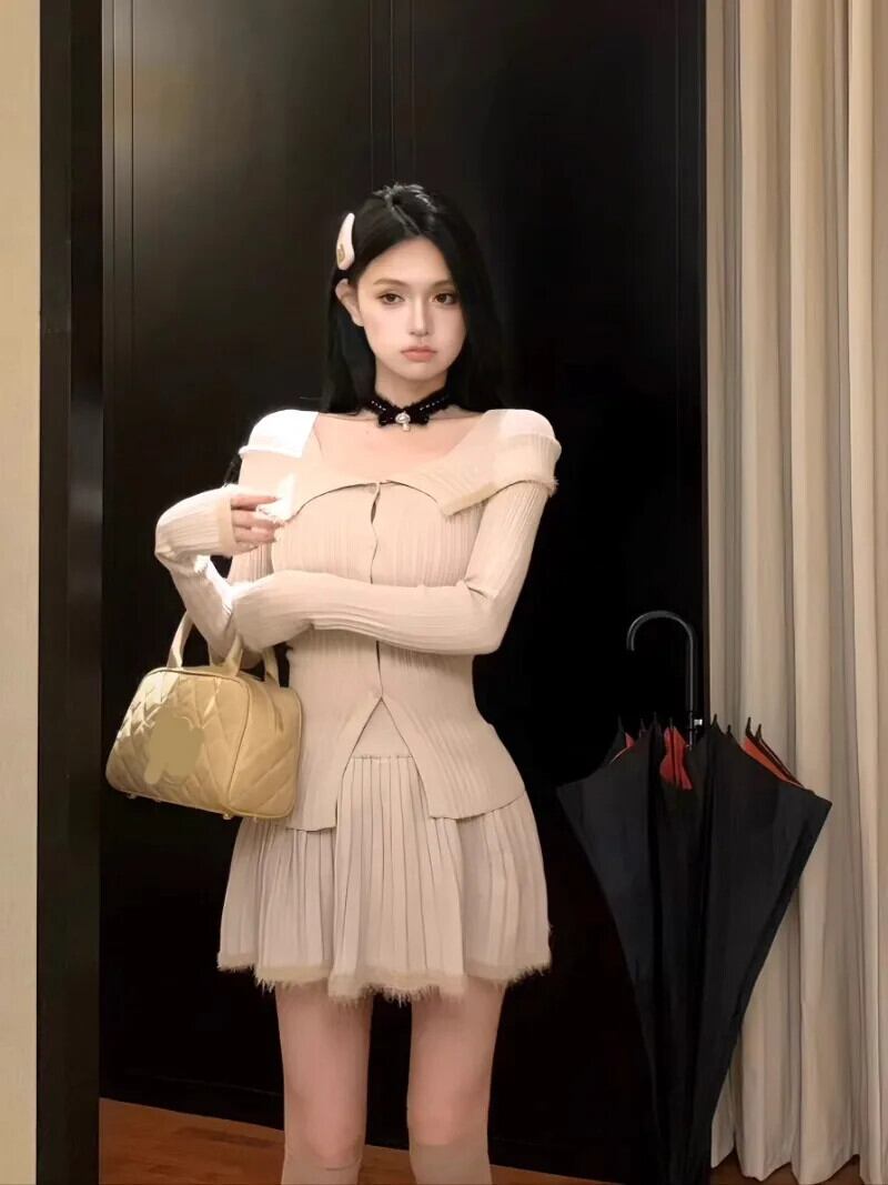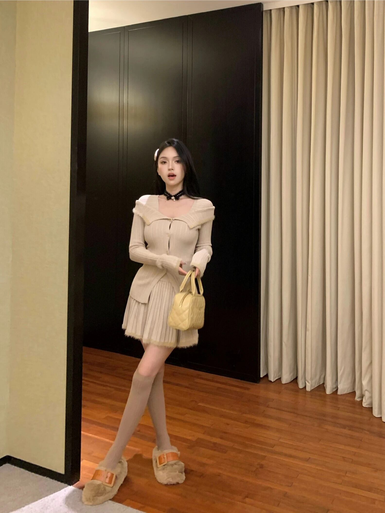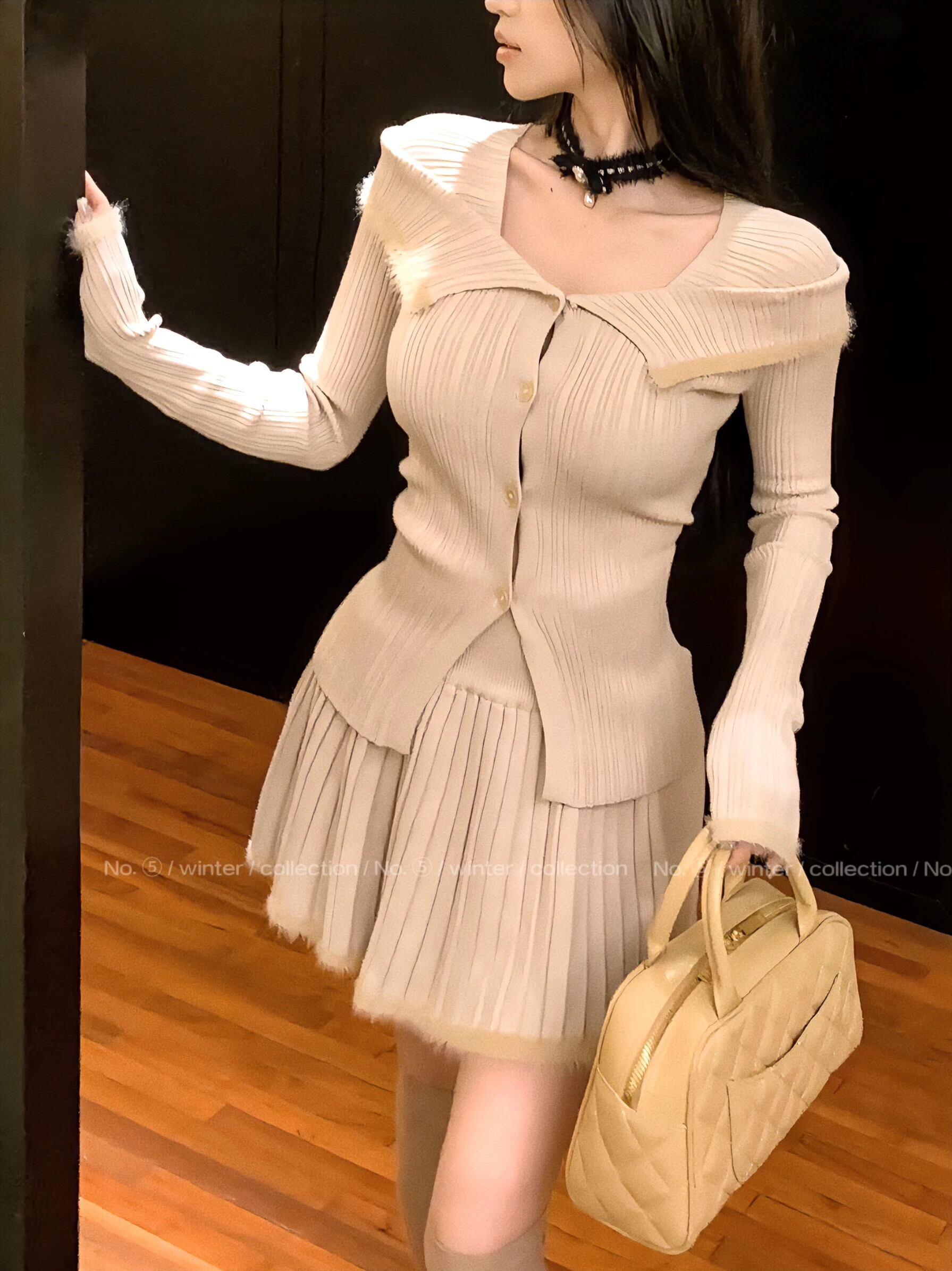甘いホットガールスーツ秋/冬長袖カーディガンセータープリーツミニスカートツーピースセット ロング 大人ガーリー スウィート キュート カジュアル オータム 秋物 ウィンター 冬物
