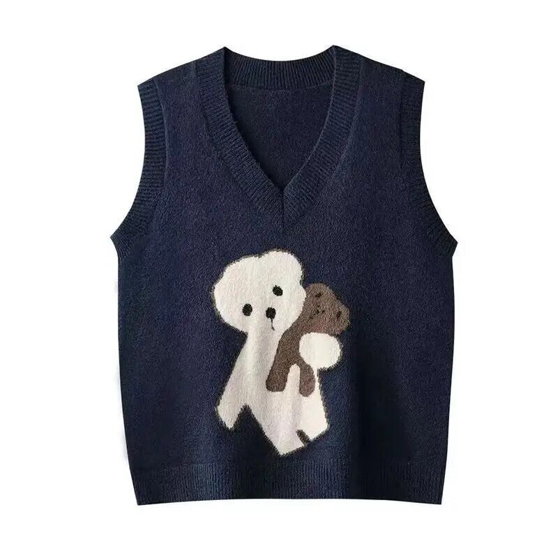 スタイルスウィートガールニットベスト秋/冬ルーズ V ネックジャカード漫画セータータンクトップ 大人ガーリー キュート カジュアル オータム 秋物 ウィンター 冬物 Vネック