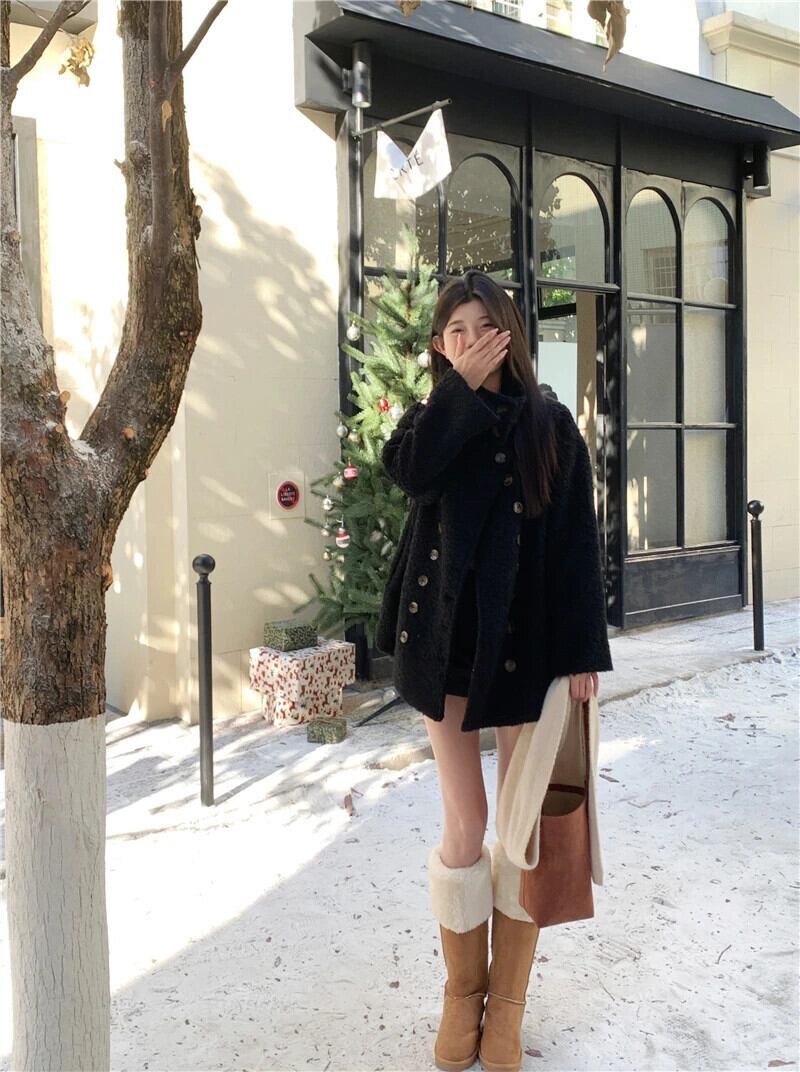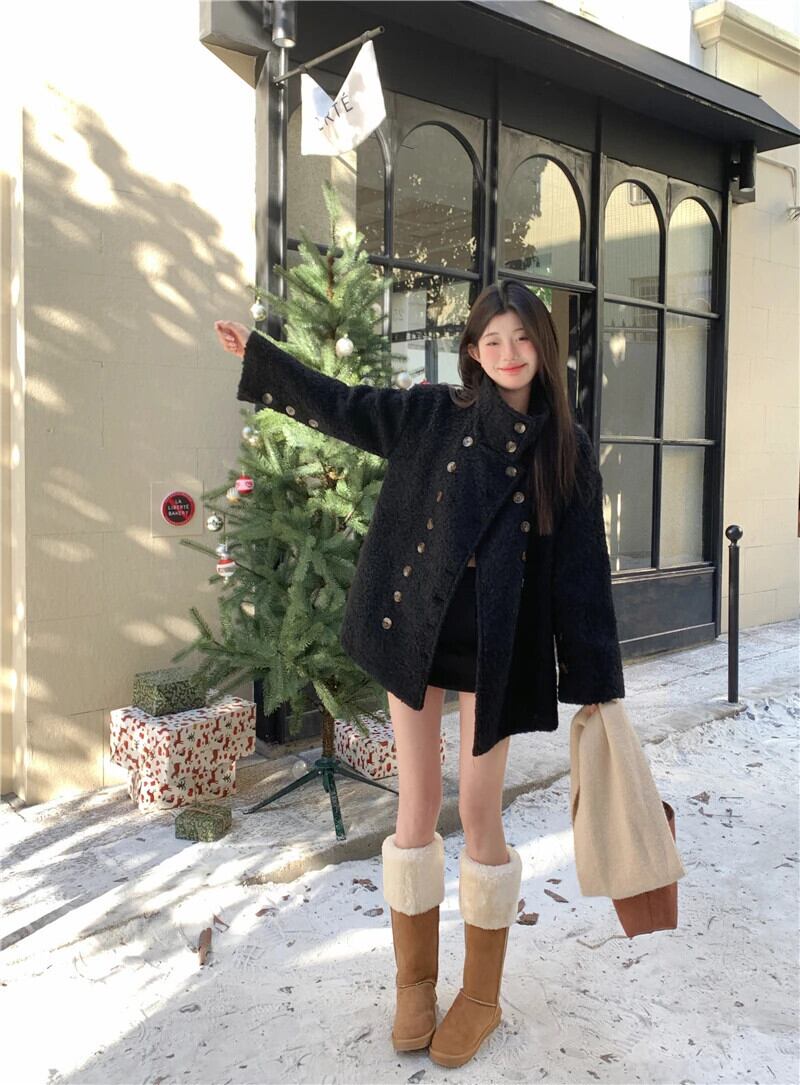 甘いホットガール豪華スタンドカラーウールジャケット冬ダブルブレストミッドレングスルーズフィットコットンジャケット 大人ガーリー スウィート キュート カジュアル ウィンター 冬物
