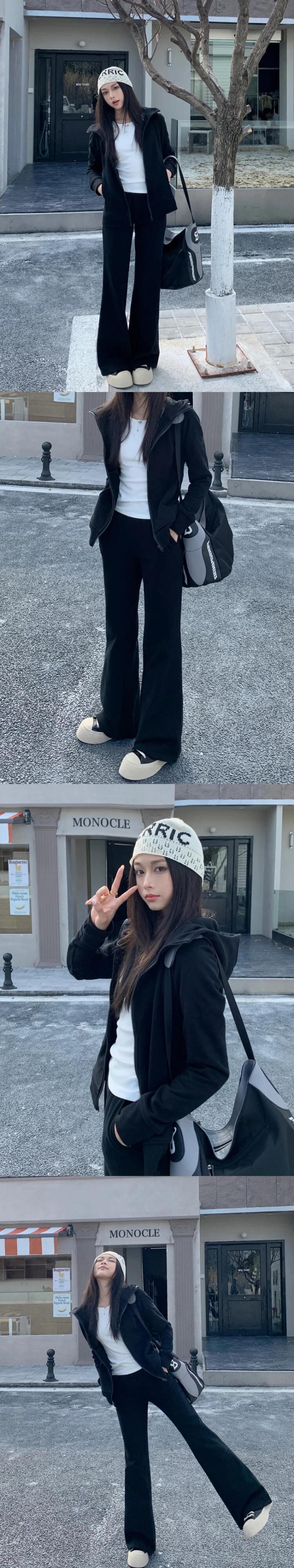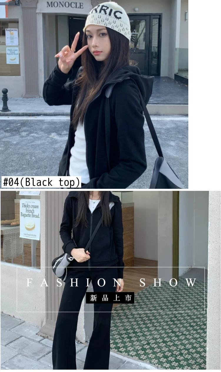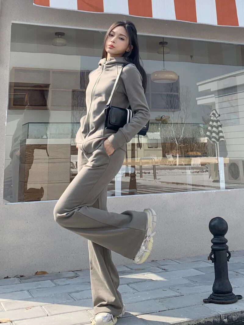 甘いホットガールスポーツスーツ冬フード付きセーターコートマイクロフレアパンツツーピースセット 大人ガーリー スウィート キュート カジュアル ウィンター 冬物