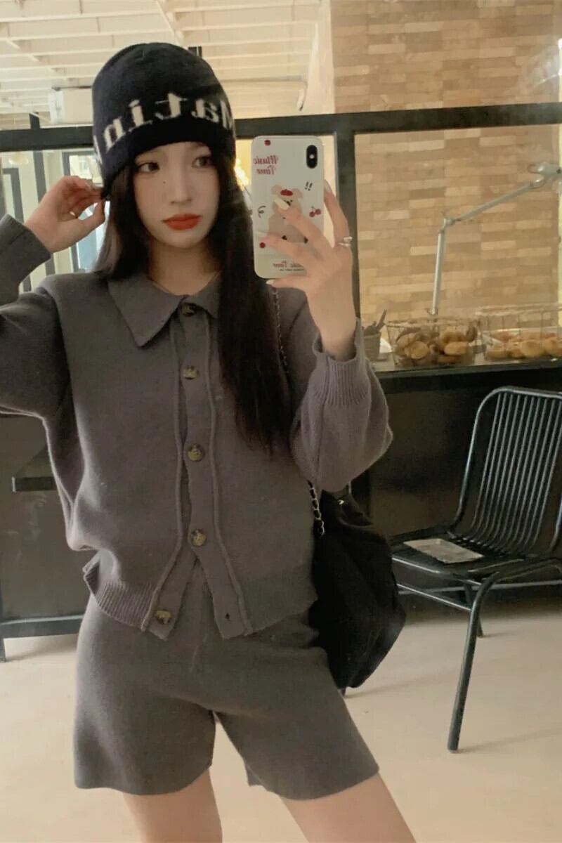 アメリカンホットガールレトロスーツ秋/冬ポロネックセーターカーディガンウエストニットショーツ2点セット オータム 秋物 ウィンター 冬物 ブルマー Oネック