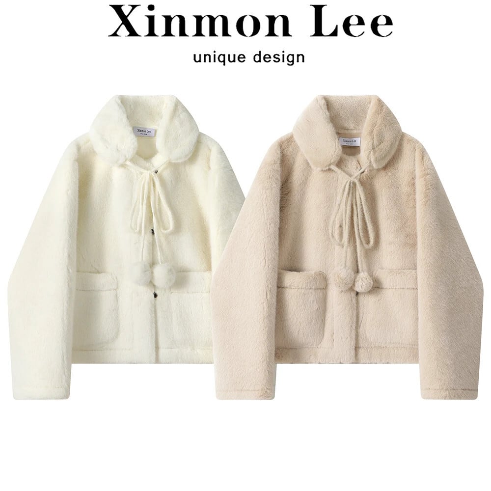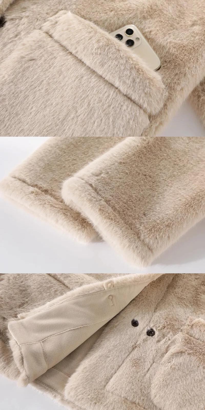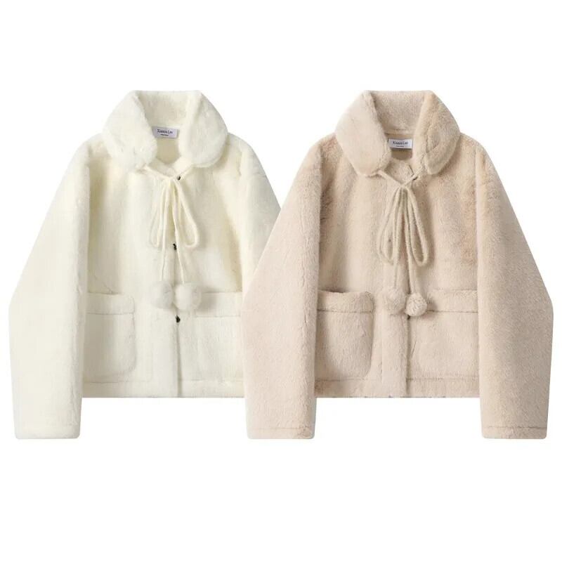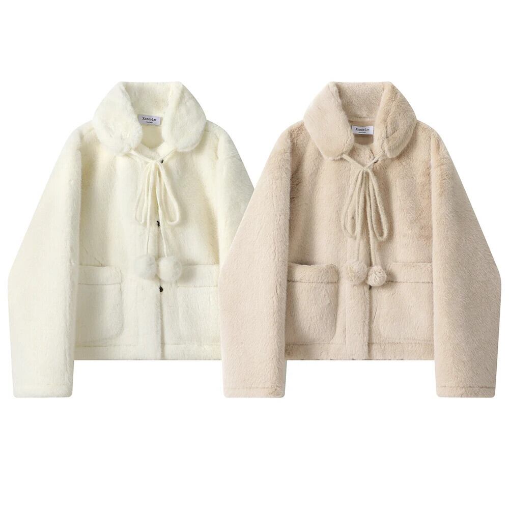 甘いホットガールフェイクファージャケット冬厚い長袖 O ネックダブルブレストショートジャケット ロング 大人ガーリー スウィート キュート カジュアル ウィンター 冬物 Oネック