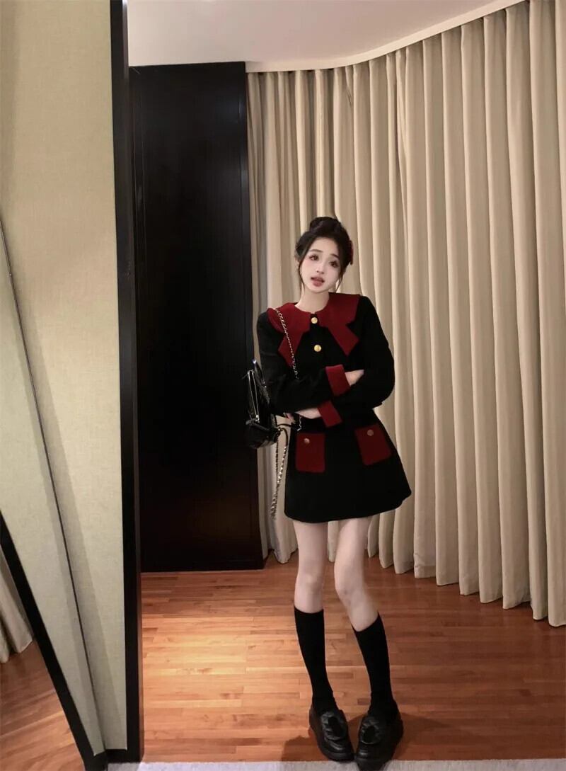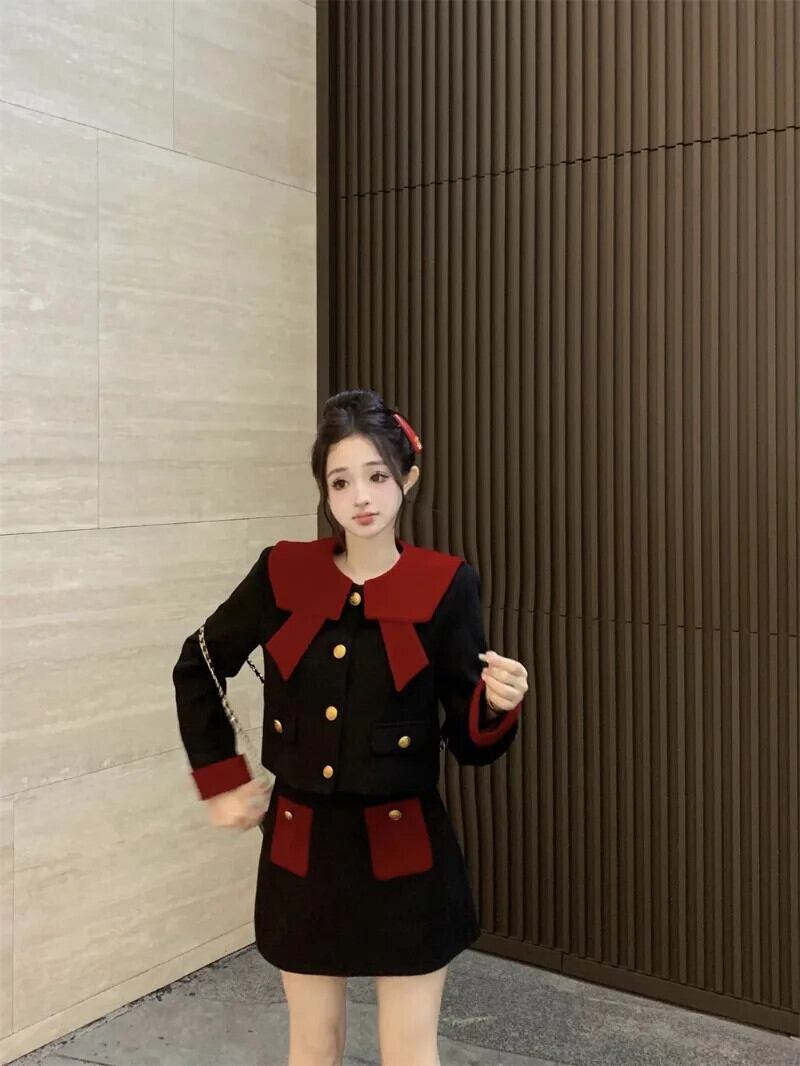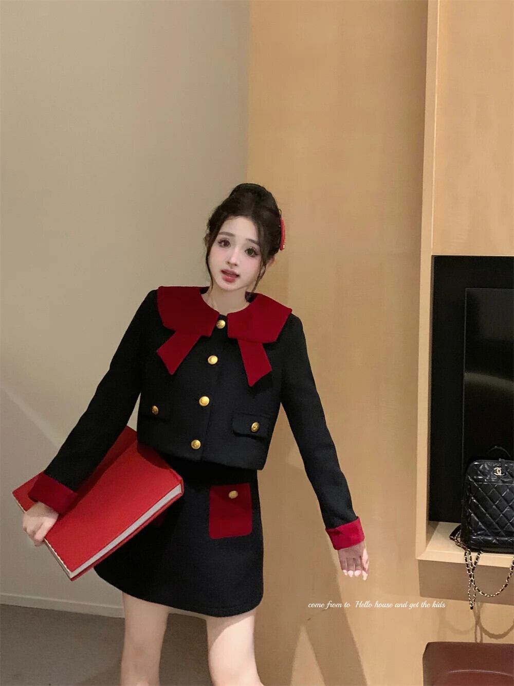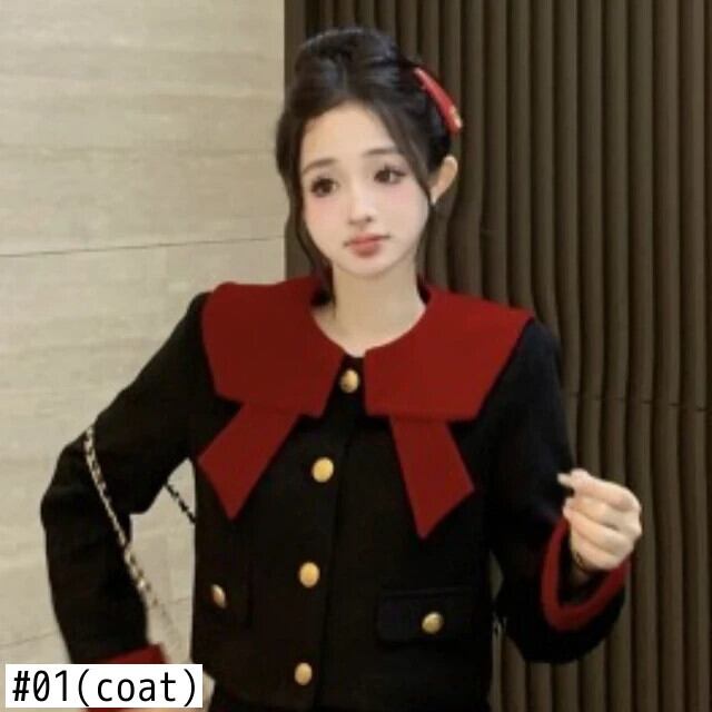 Sweet Girl クリスマススーツ レディース 秋冬 長袖 ピーターパンカラー コート ウエスト ミニスカート 2点セット ロング 大人ガーリー スウィート キュート カジュアル オータム 秋物 ウィンター 冬物