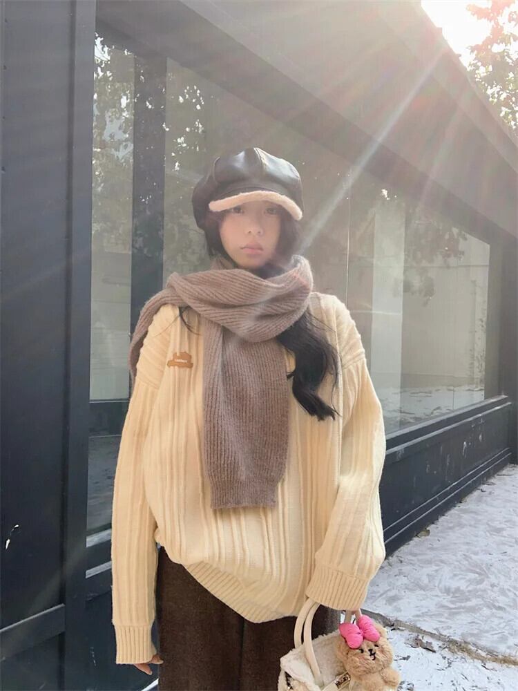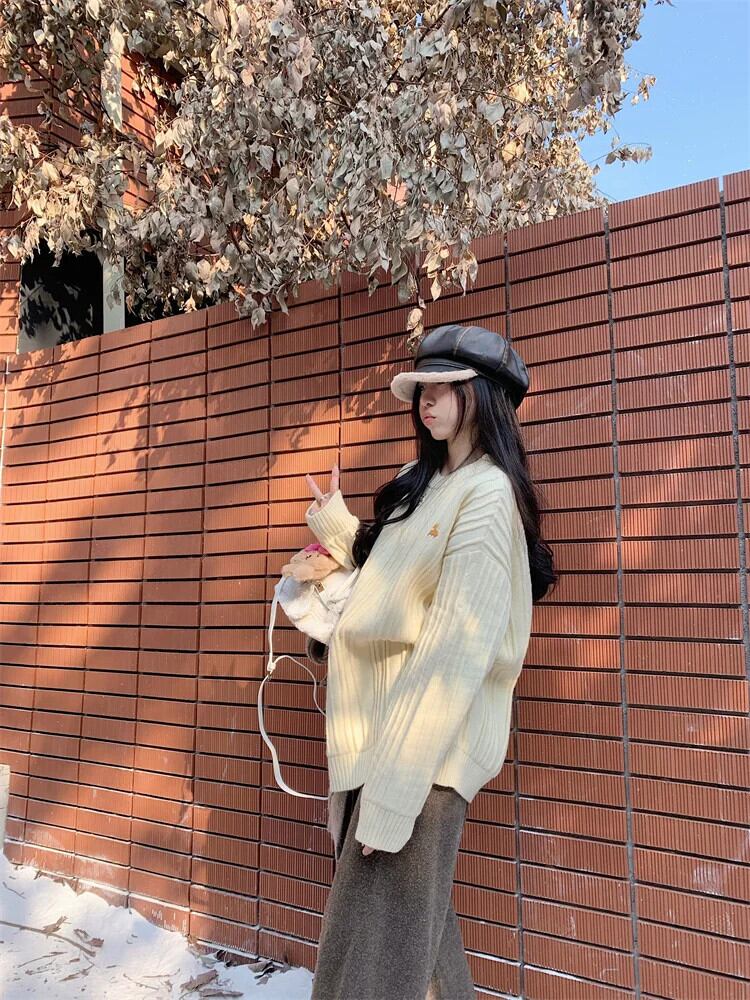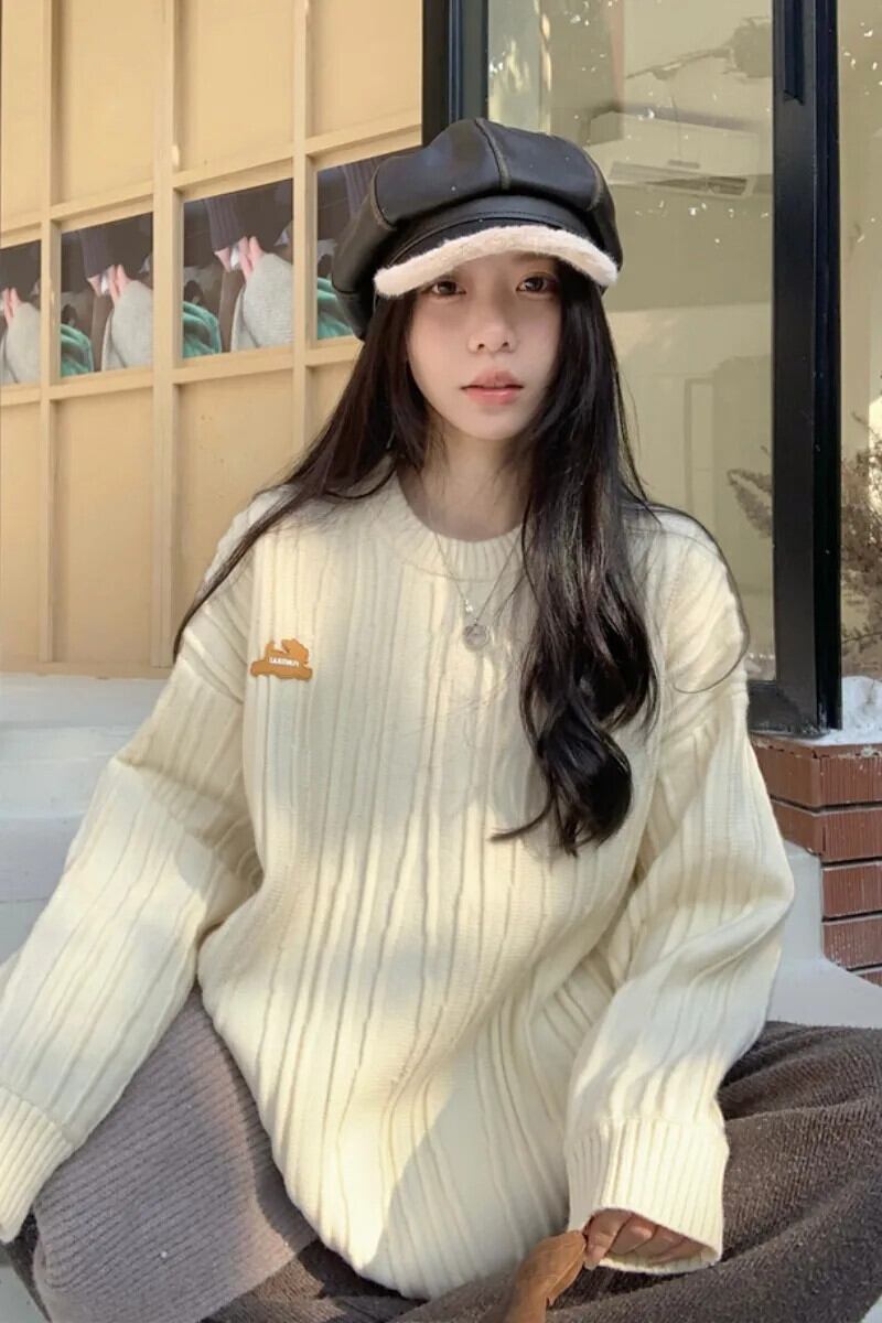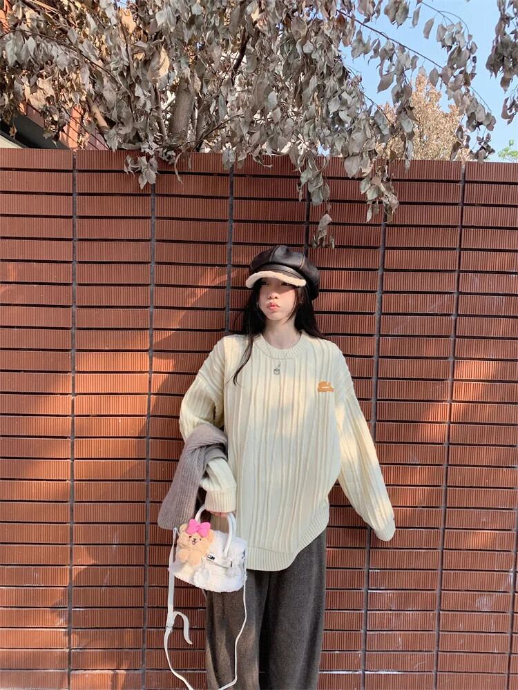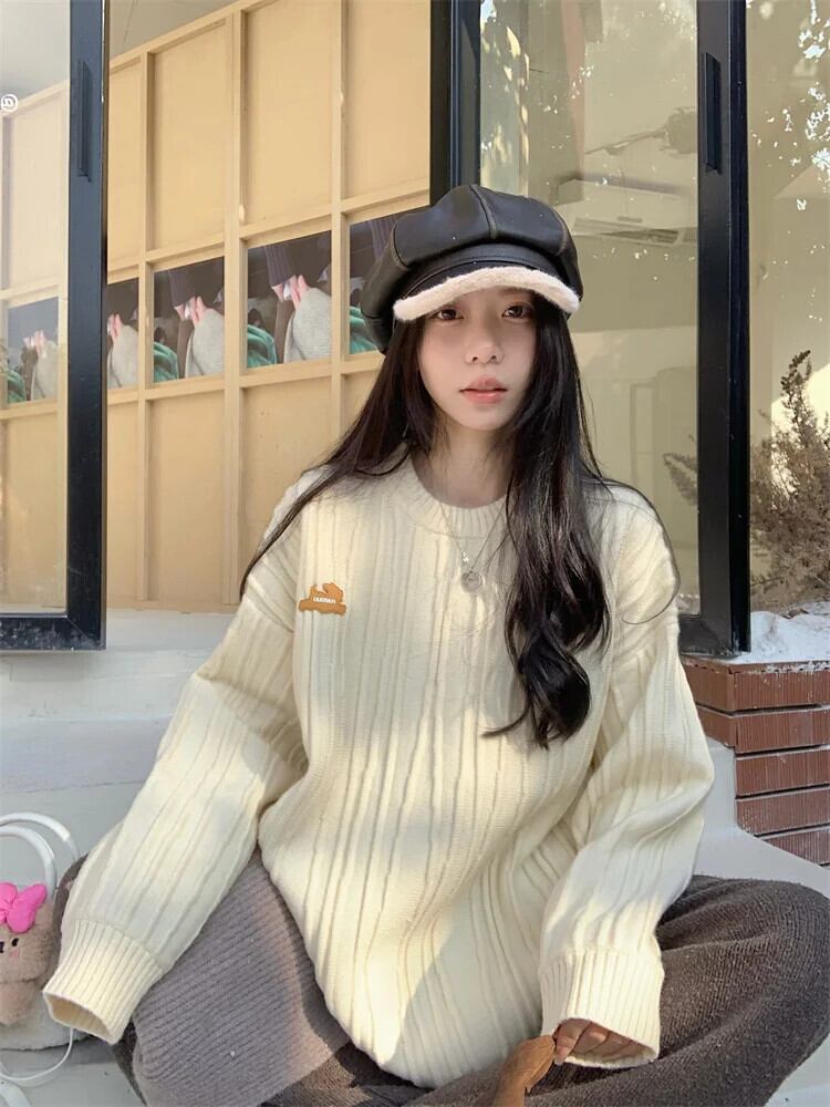 甘いホットガールアメリカンスタイルセーター秋/冬ルーズソフト O ネックニットプルオーバー 大人ガーリー スウィート キュート カジュアル オータム 秋物 ウィンター 冬物 Oネック
