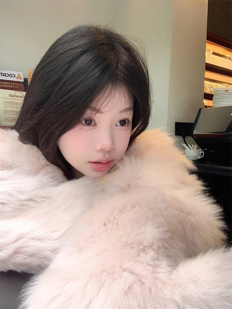 甘いホットガールピンク O ネックフェイクファーコート秋/冬ルーズフィット長袖カーディガントップ ロング 大人ガーリー スウィート キュート カジュアル オータム 秋物 ウィンター 冬物 Oネック