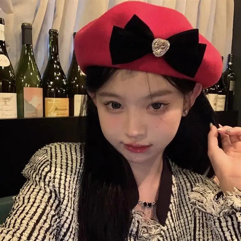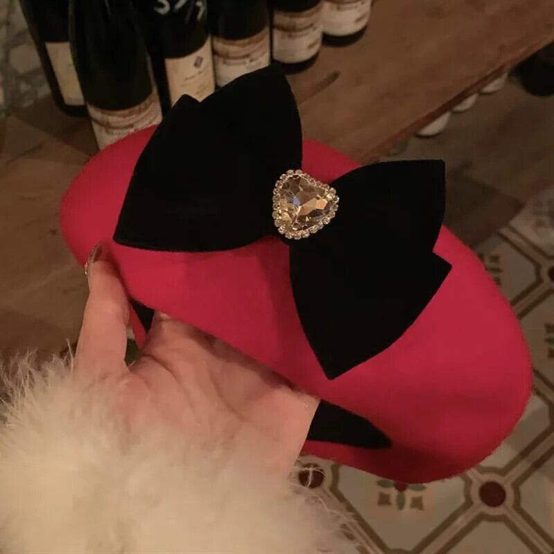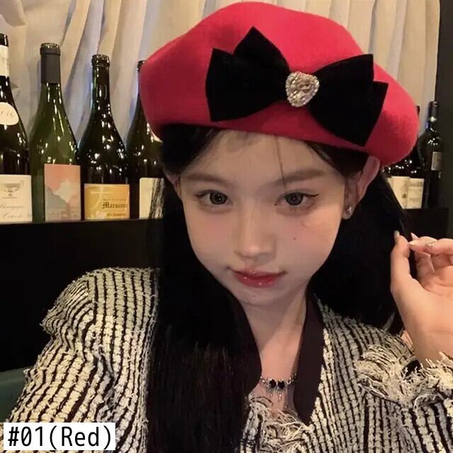 スタイルスイートホットガールベルベットリボンベレー帽秋/冬レッドクリスマスかわいいベレー帽トレンディアクセサリー 大人ガーリー スウィート キュート カジュアル オータム 秋物 ウィンター 冬物 ベレット ヘアアクセサリー
