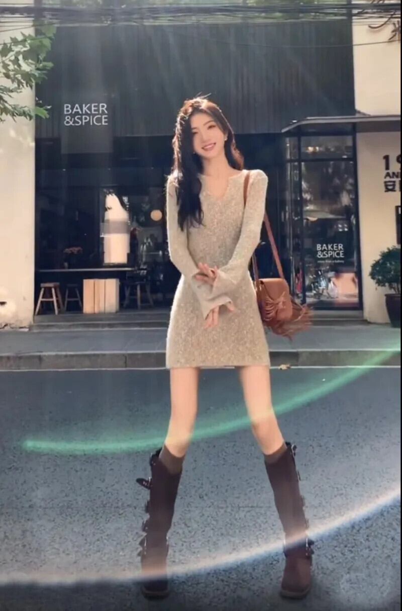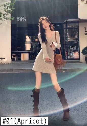 甘いホットガールセクシー V ネックニットラップヒップドレス秋/冬長袖スリムフィットドレス ロング 大人ガーリー スウィート キュート カジュアル オータム 秋物 ウィンター 冬物 Vネック