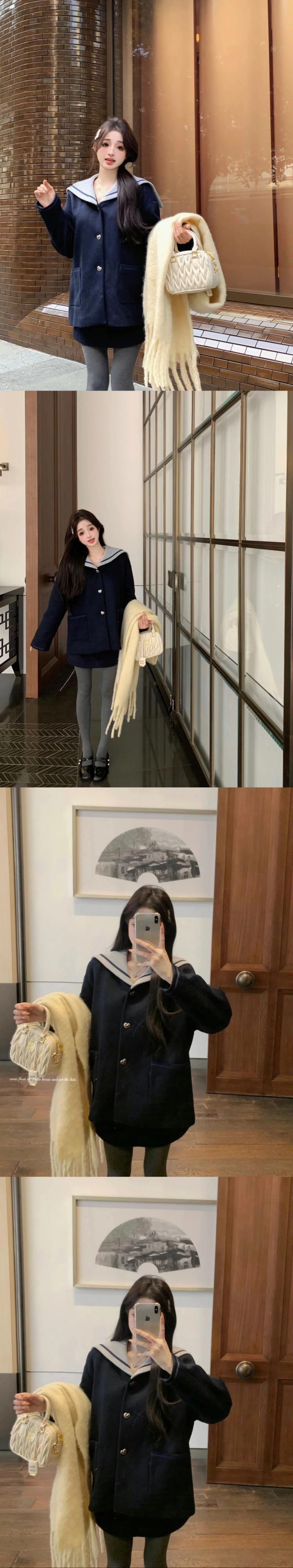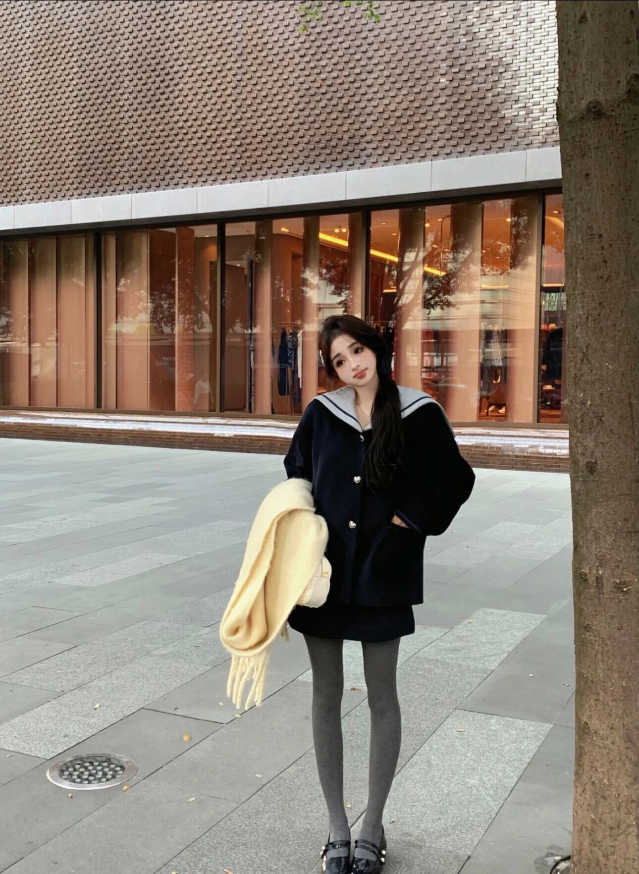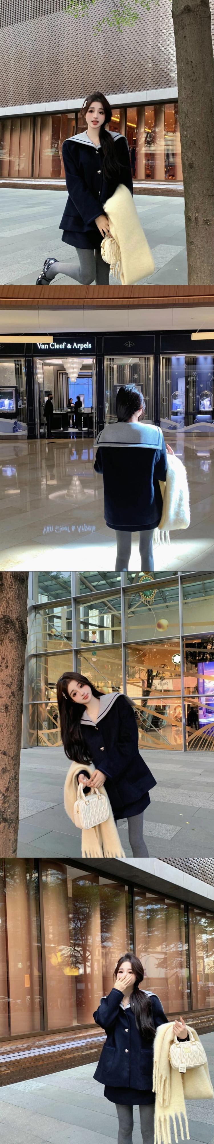 Sweet Girl プレッピー スタイル スーツ レディース 冬 セーラー襟 ウール コート ウエスト ミニ スカート 2 点セット 大人ガーリー スウィート キュート カジュアル ウィンター 冬物