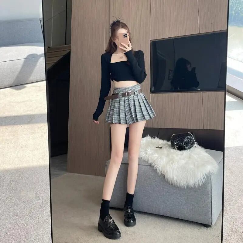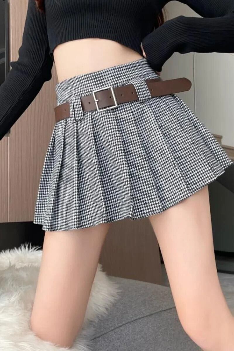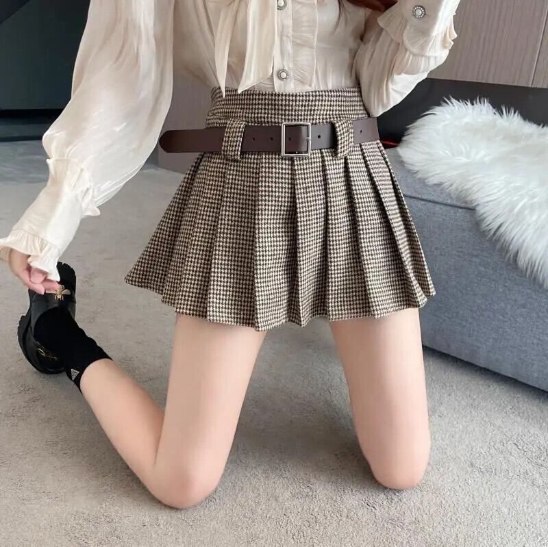 レトロスタイルウールスカートレディース秋冬通勤Aラインプリーツショートスカート オータム 秋物 ウィンター 冬物