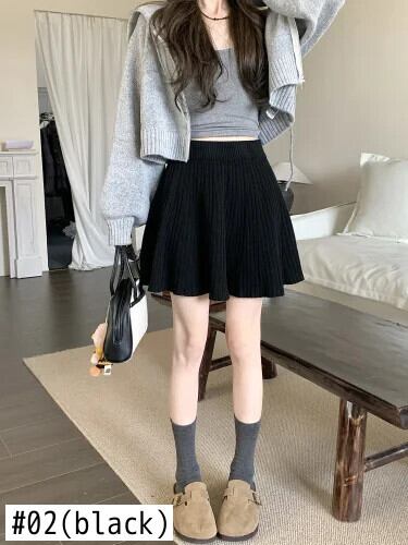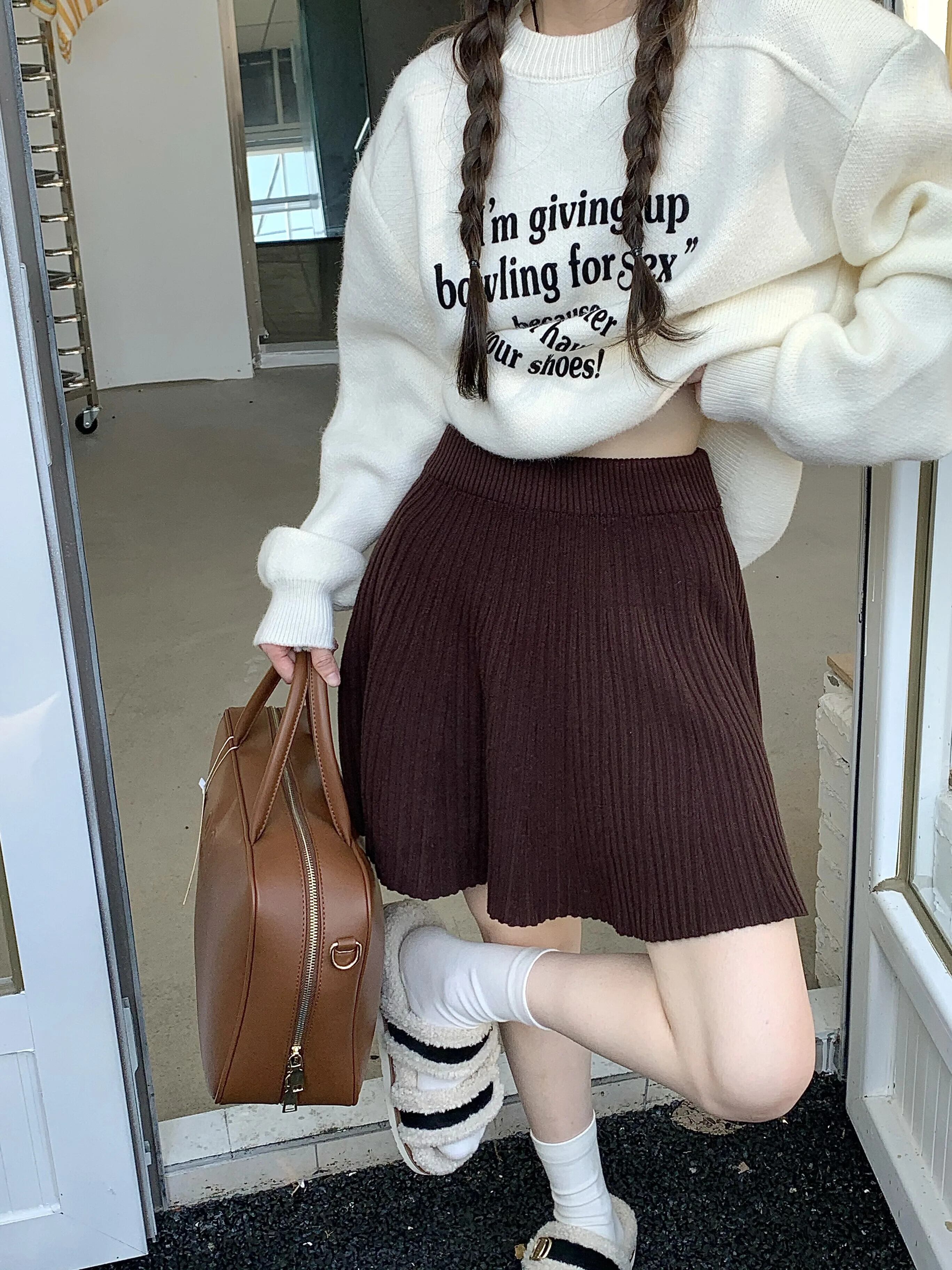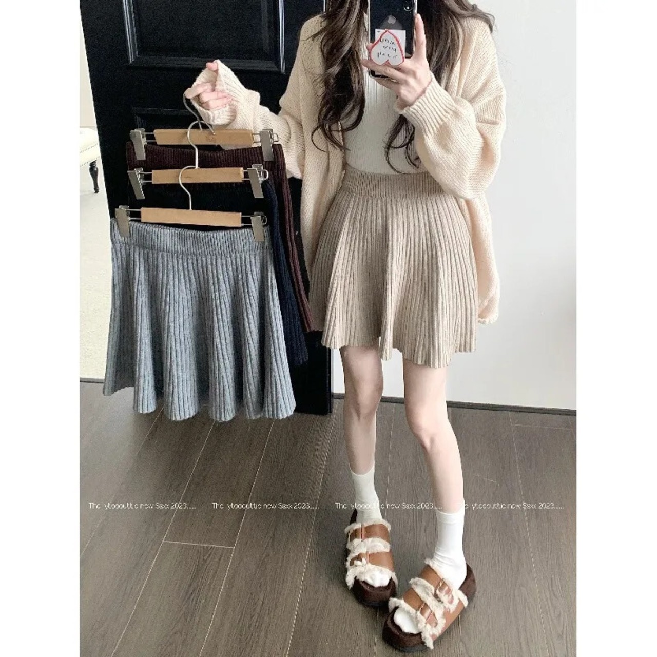 スタイル甘いホットガールプリーツニットミニスカート秋と冬ウエスト A ラインプリーツショートスカート 大人ガーリー スウィート キュート カジュアル オータム 秋物 ウィンター 冬物 Aライン
