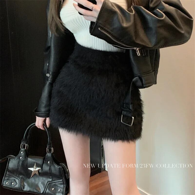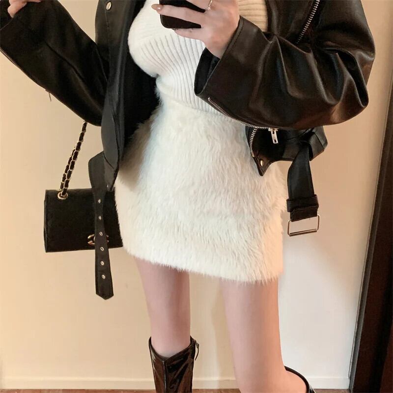 甘いホットガール豪華ミニスカート冬ウエストボトム弾性 A ラインラップヒップショートスカート エラスティック 伸縮 大人ガーリー スウィート キュート カジュアル ウィンター 冬物 Aライン