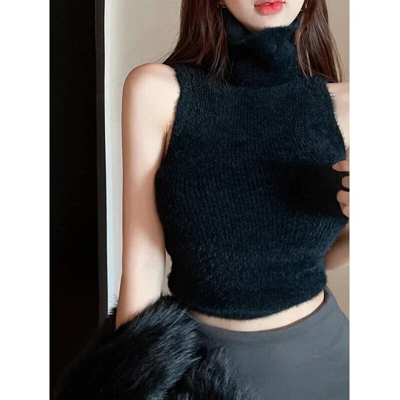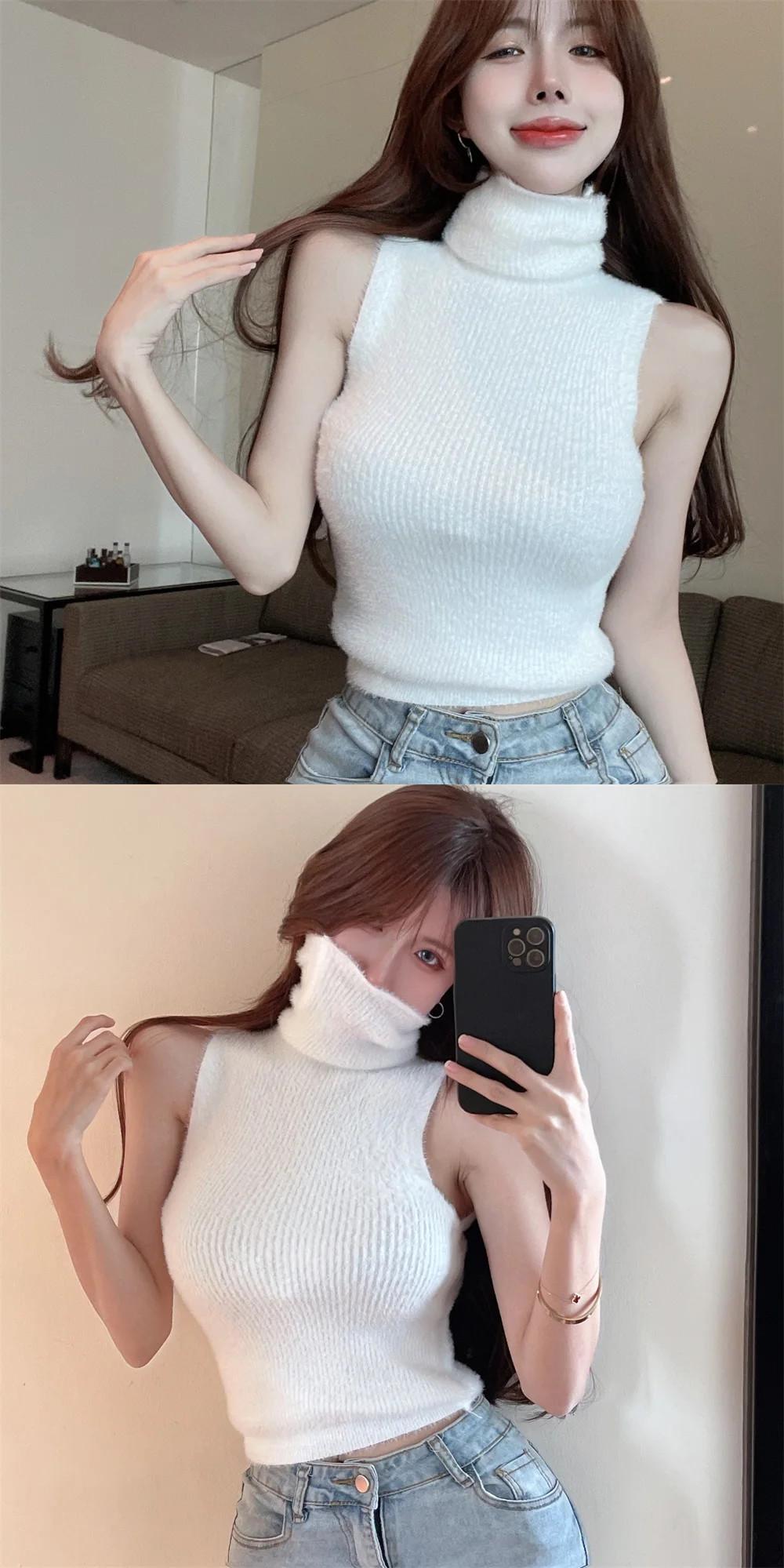 純粋セクシーホットガール襟ミンクセーターベスト秋ノースリーブスリムショートニットプルオーバー オータム 秋物