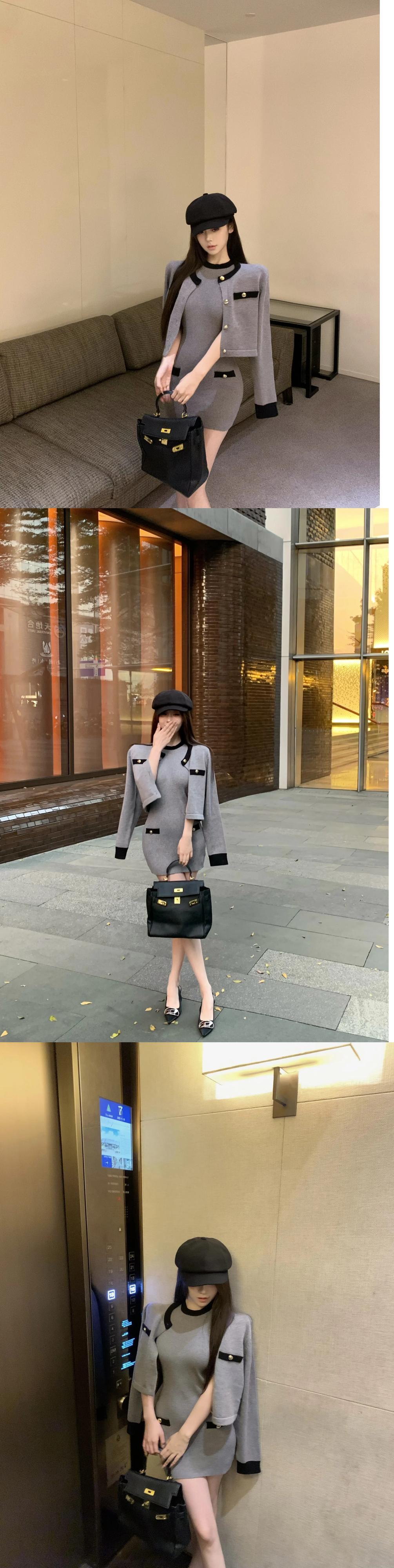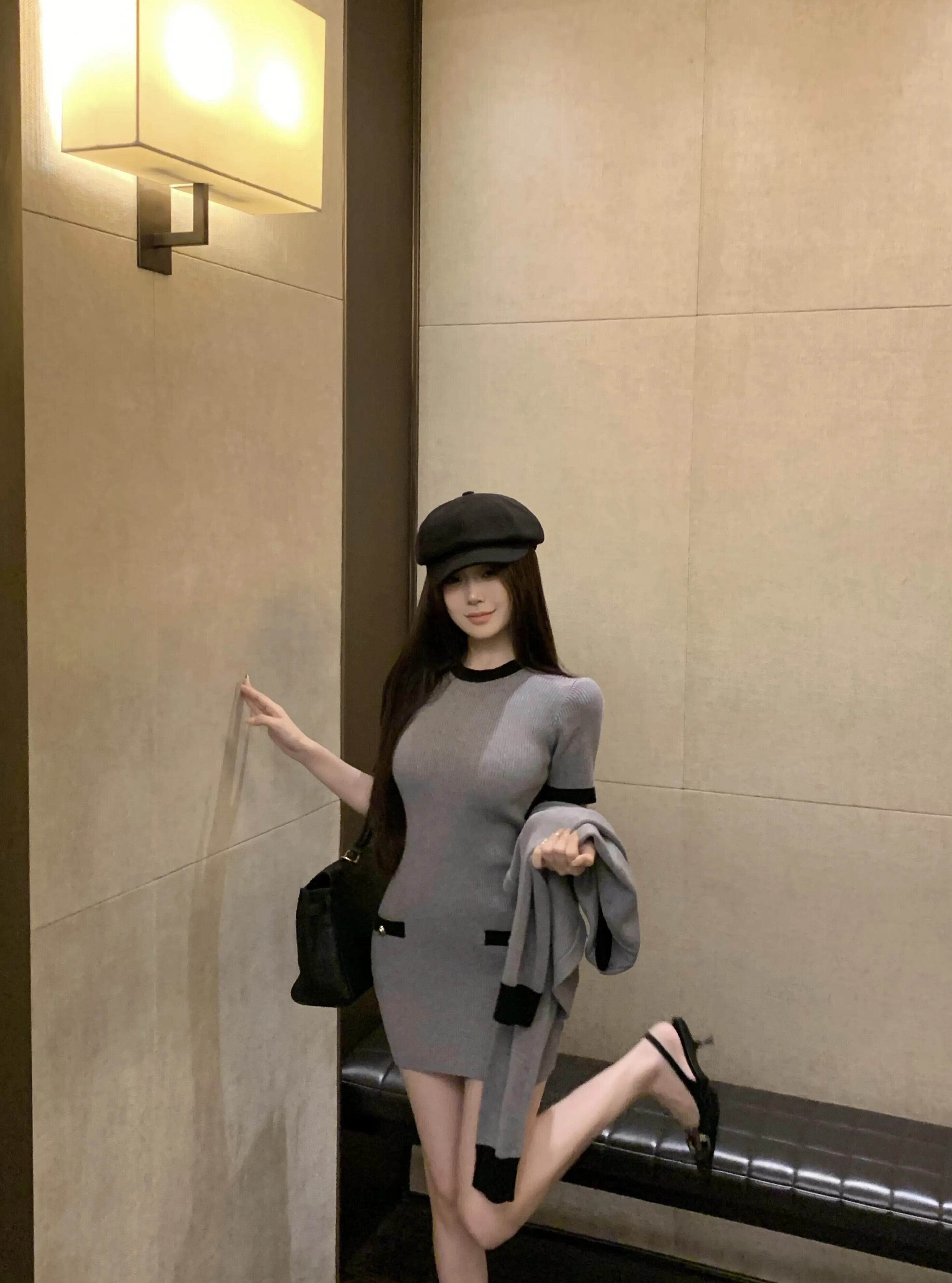 スウィートガールスーツ レディース 秋 Oネック 長袖カーディガン ニット スリムフィットドレス ツーピースセット ロング 大人ガーリー キュート カジュアル オータム 秋物