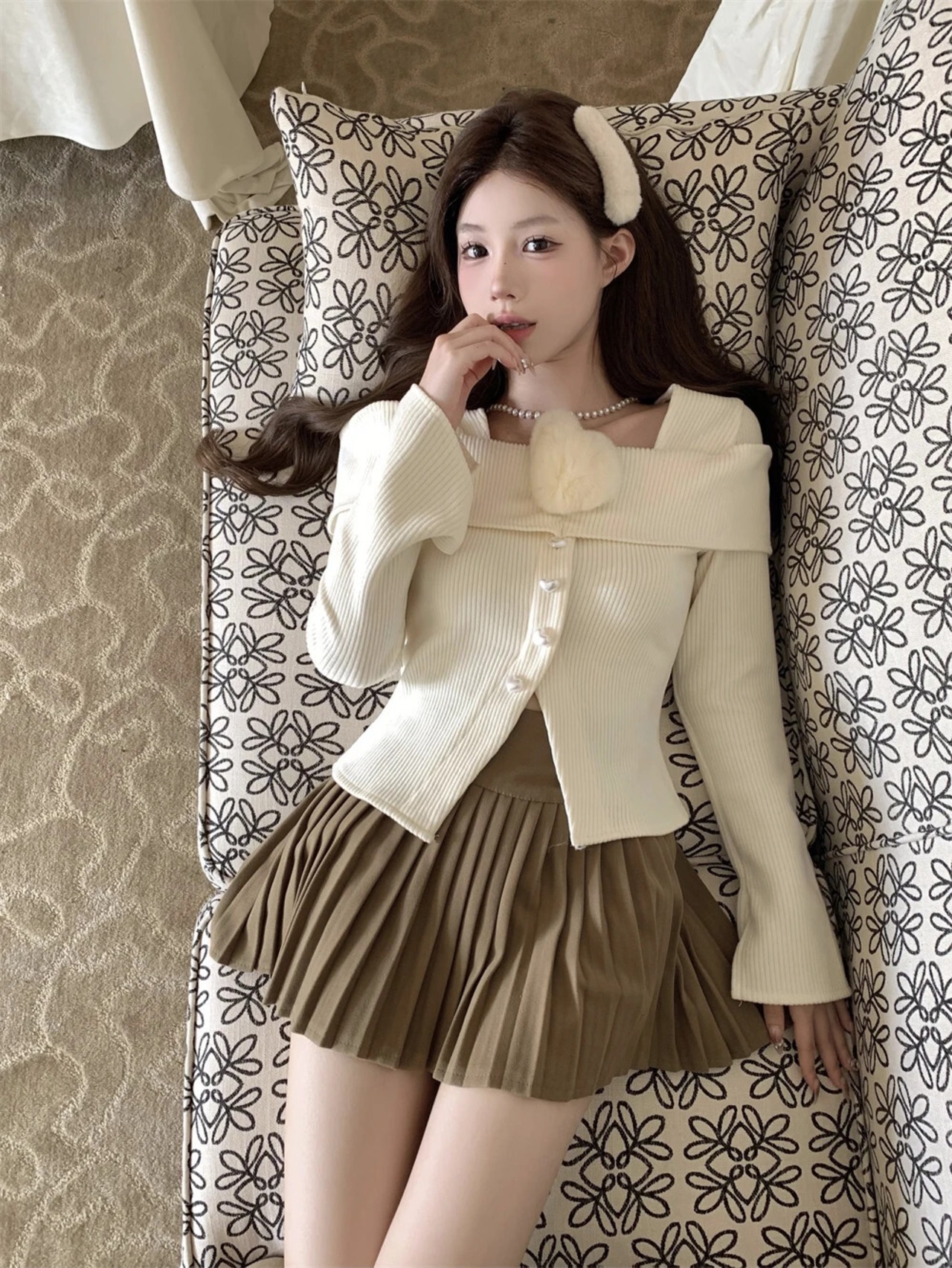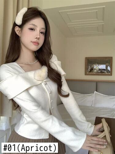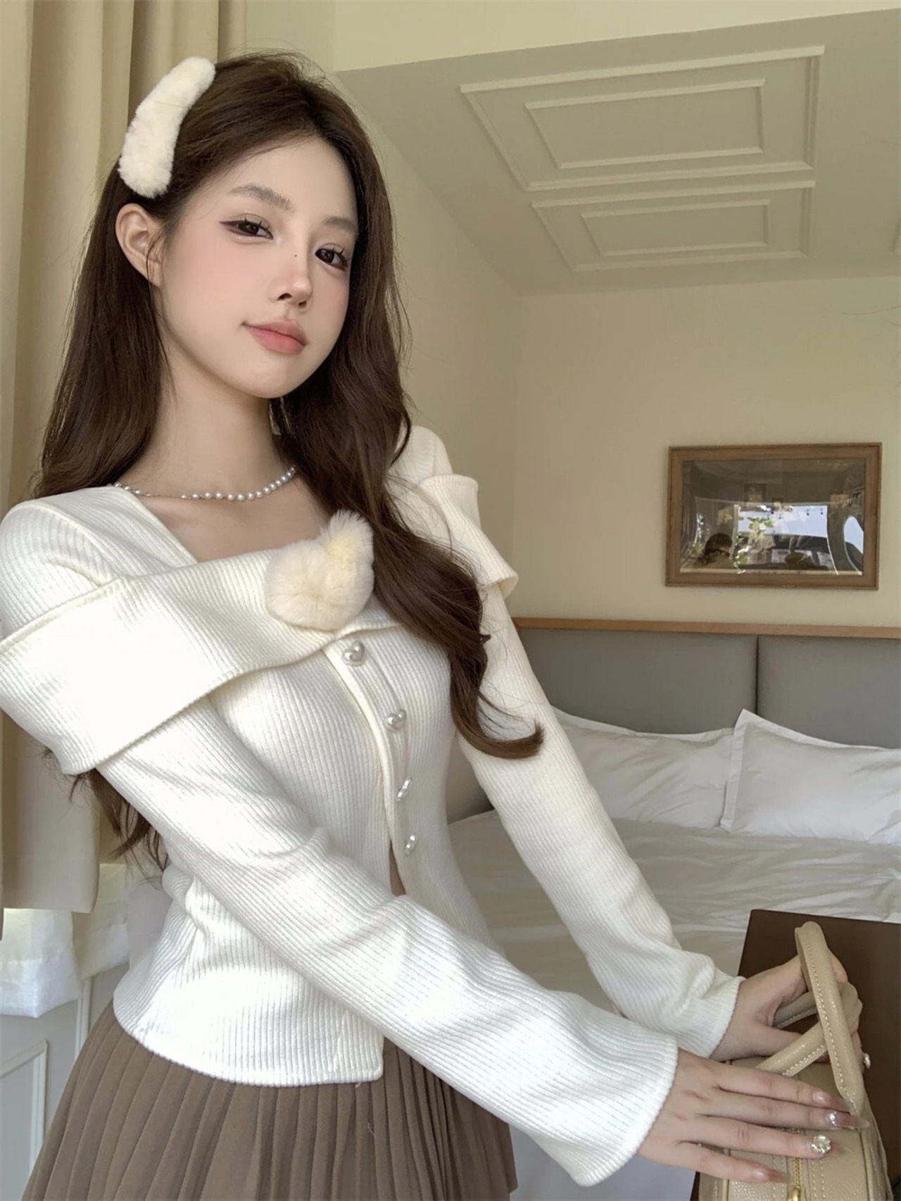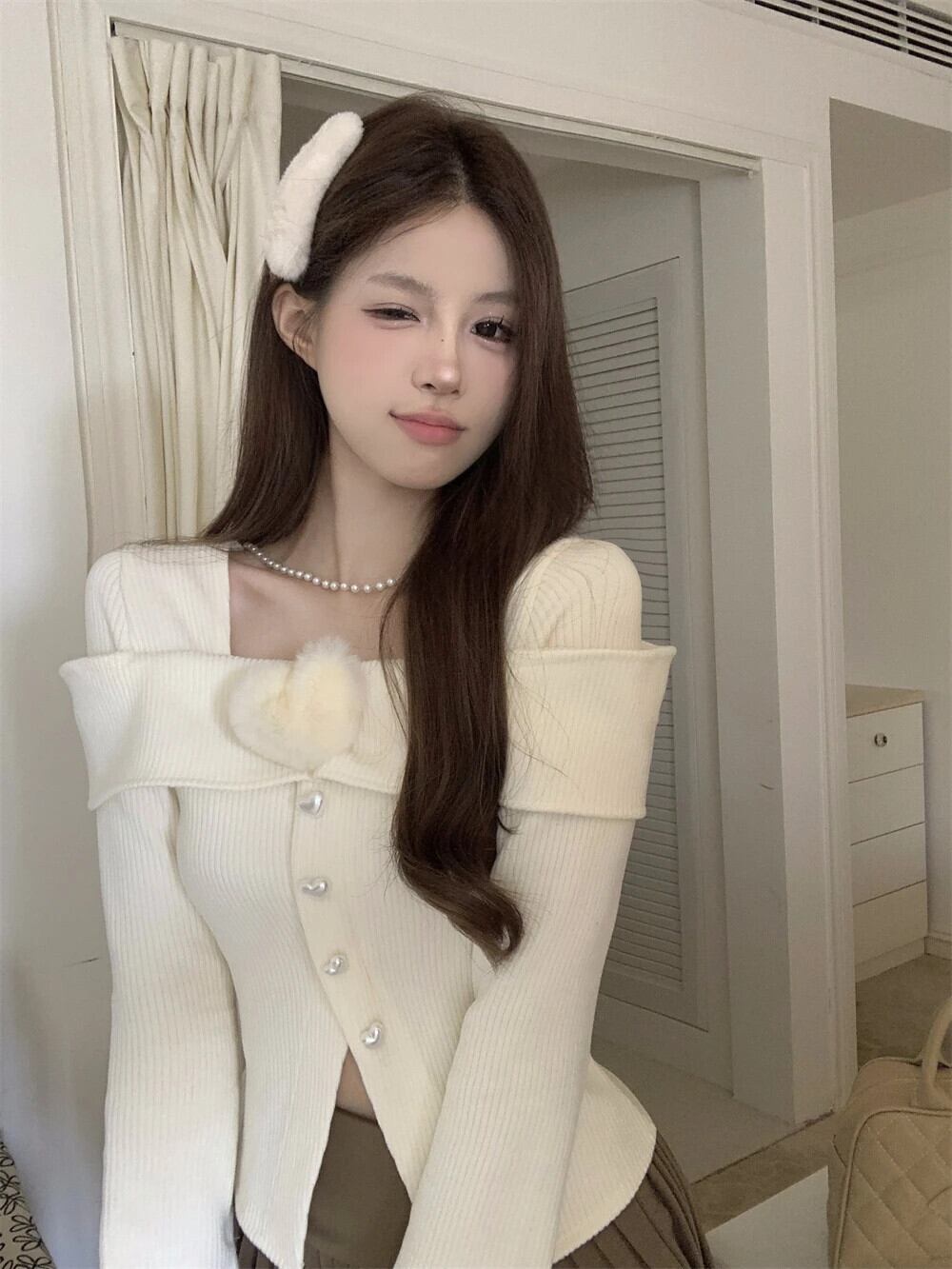 Sweet Girl スクエアカラー立体ぬいぐるみ愛セーター冬スリムフィットショートニットボトムシャツ 大人ガーリー スウィート キュート カジュアル ウィンター 冬物 スクウェア