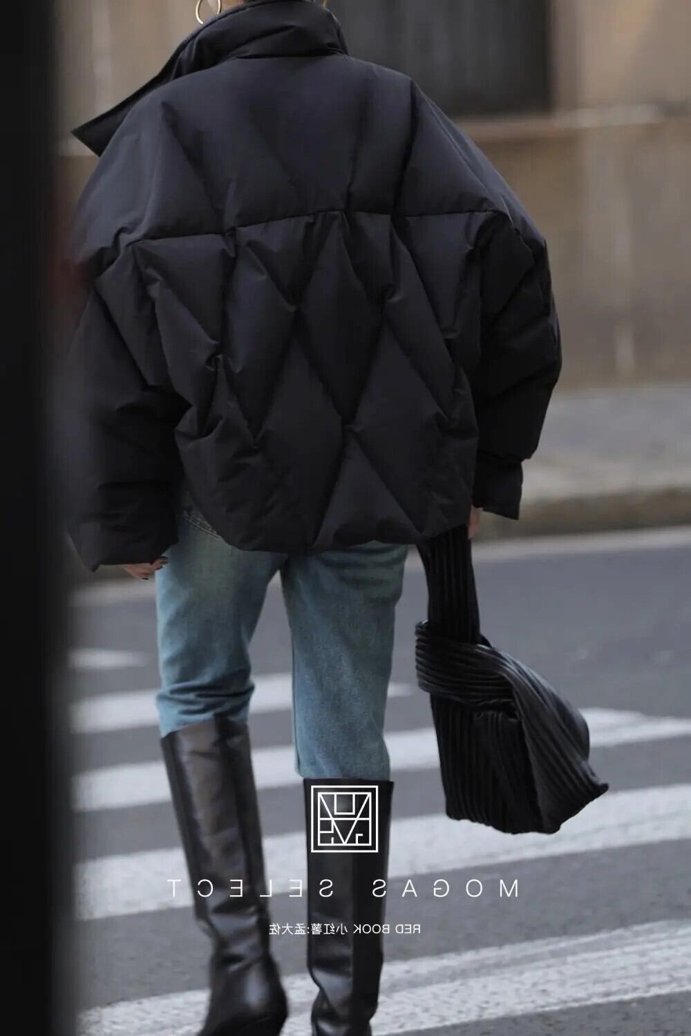 甘いホットガールホワイトグースダウンシルエットショートジャケット冬スタンドカラールーズシングルブレストジャケット 大人ガーリー スウィート キュート カジュアル ウィンター 冬物