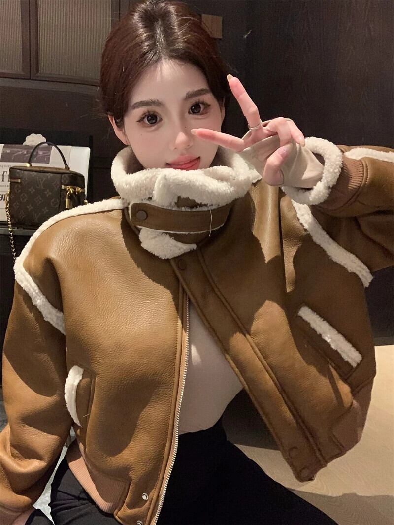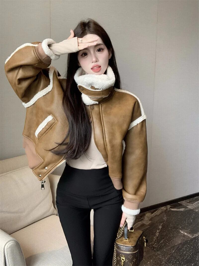 メイラードスタイル甘いホットガールレトロショートコート秋/冬ラムウール両面毛皮ジャケット 大人ガーリー スウィート キュート カジュアル オータム 秋物 ウィンター 冬物