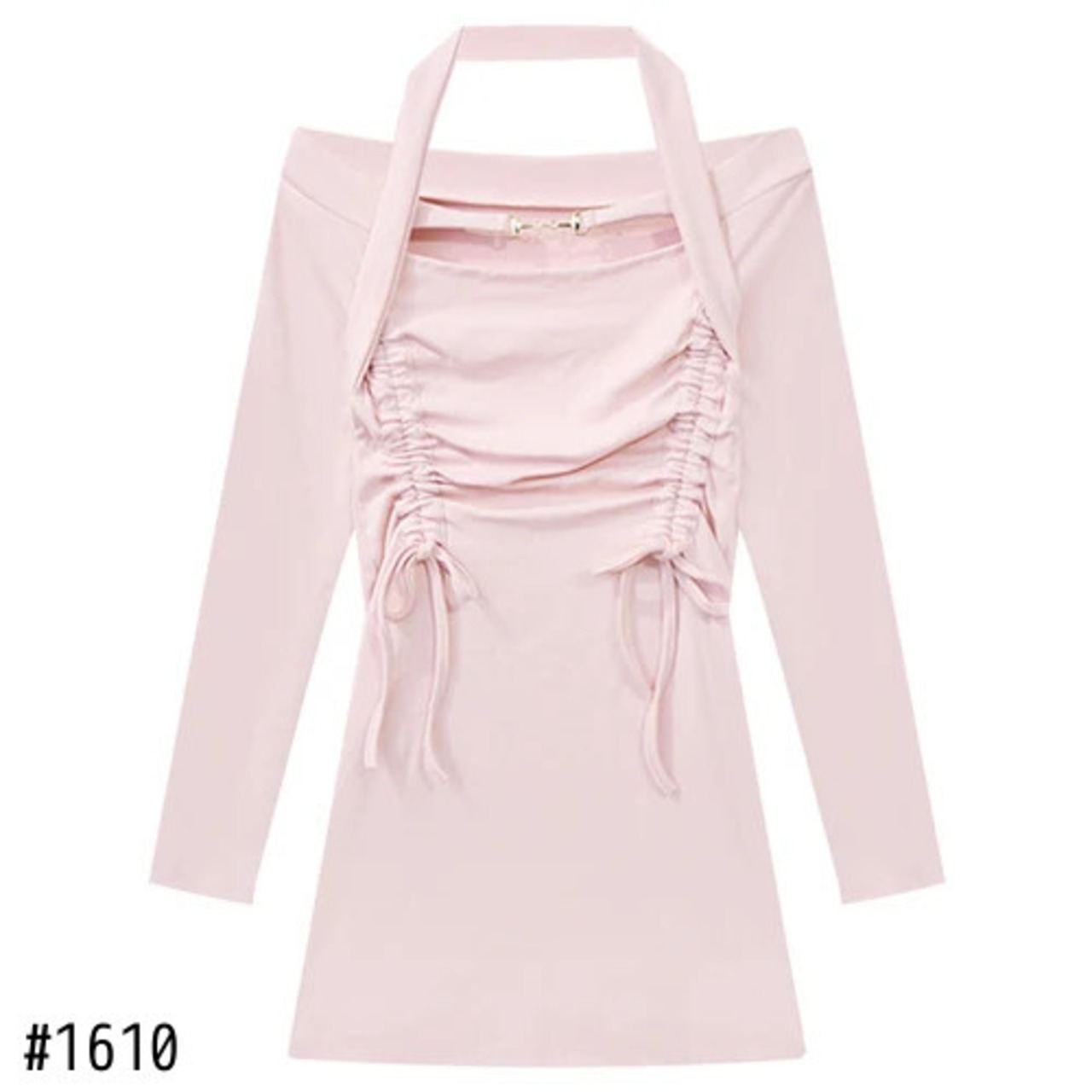 純粋セクシーホットガール長袖ドレス秋/冬スリムフィットホルターネックストラップラップヒップショートドレス ロング オータム 秋物 ウィンター 冬物