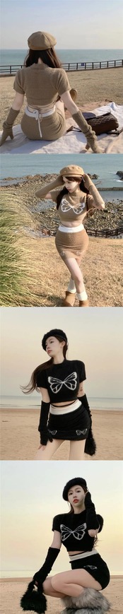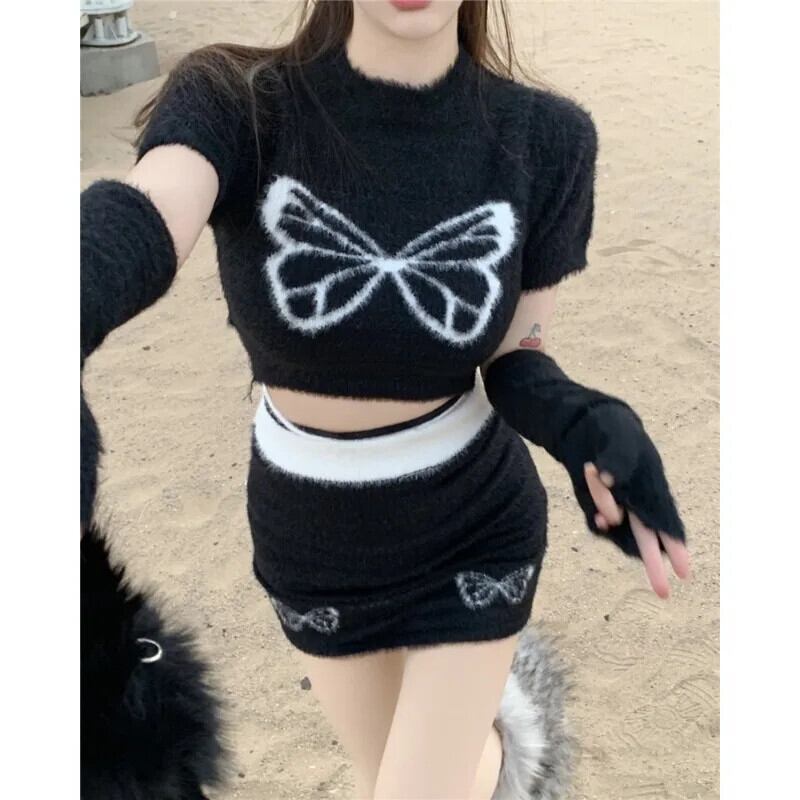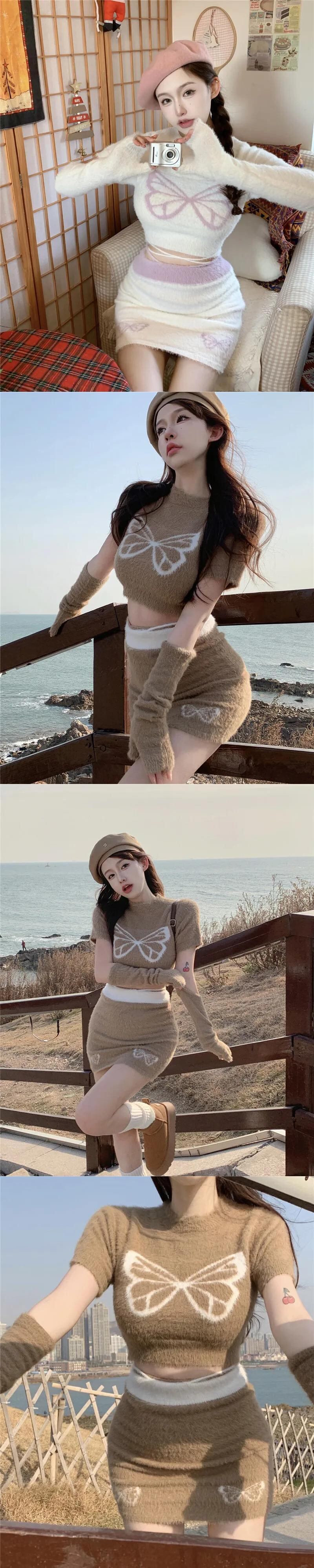 Sweet Girl ニットスーツ レディース 秋蝶モヘア袖トップウエストミニスカート 2 点セット 大人ガーリー スウィート キュート カジュアル オータム 秋物