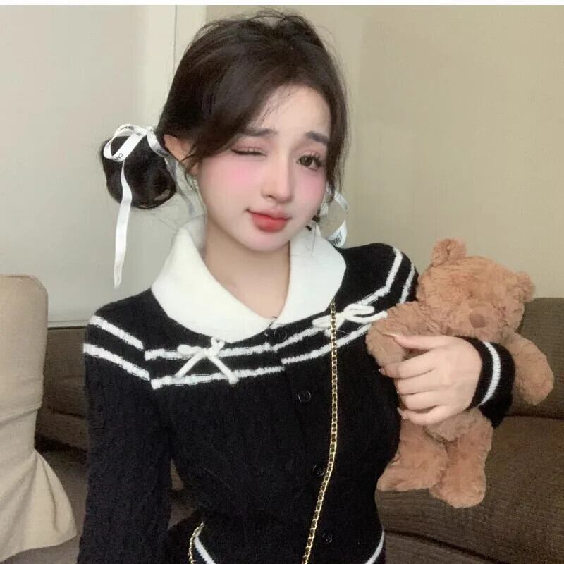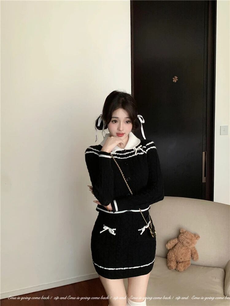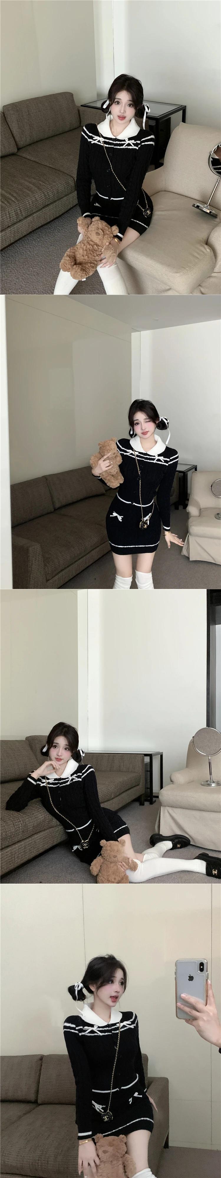 スウィートガールスーツ レディース 秋冬 ピーターパンカラー コントラストニットシャツ ミニスカート 2点セット 大人ガーリー キュート カジュアル オータム 秋物 ウィンター 冬物