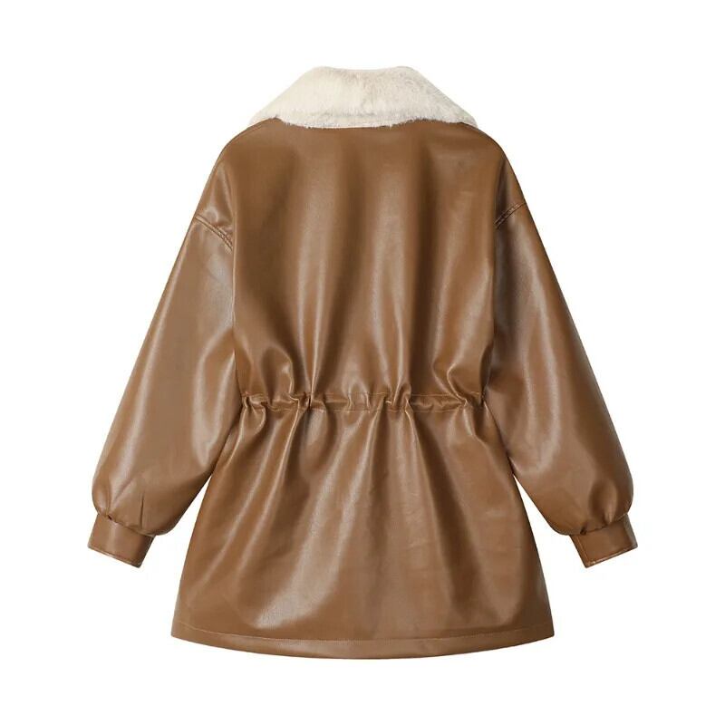 アメリカンホットガールレザーコート冬肥厚毛皮襟調節可能ウエスト長袖コート ロング ウィンター 冬物 アジャスタブル