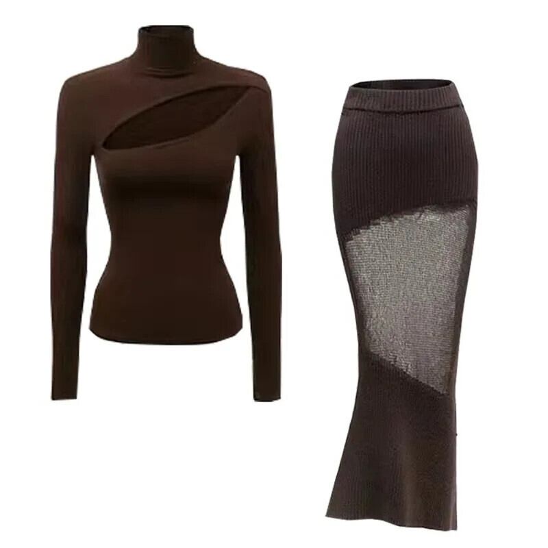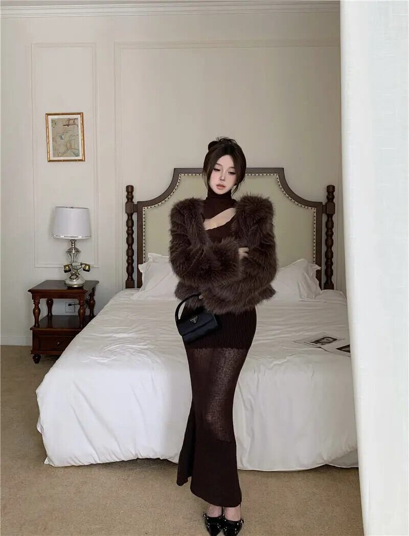 フレンチホットガールメイラードスタイルスーツ冬豪華ショートジャケットタートルネック底シャツロングスカートツーピースセット ウィンター 冬物