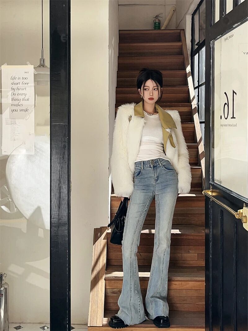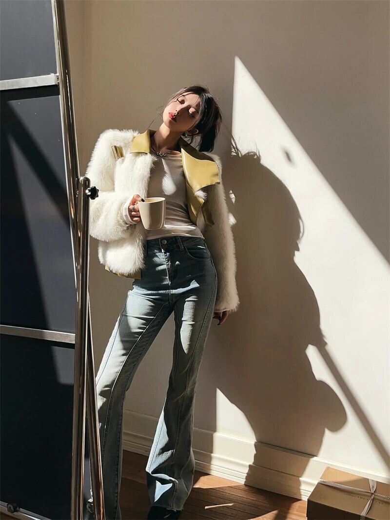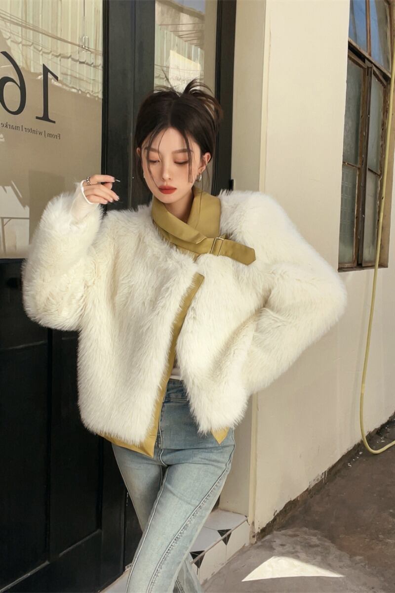 Sweet Girl レトロスタンドカラーフェイクファージャケット秋/冬ルーズフィット長袖ショートカーディガン ロング 大人ガーリー スウィート キュート カジュアル オータム 秋物 ウィンター 冬物