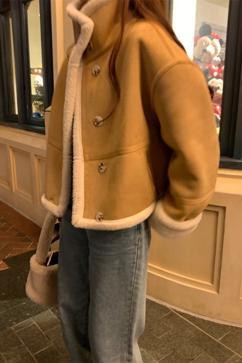 甘いホットガール両面ジャケット秋と冬暖かさ厚いスエードラムウールジャケット スウェード 大人ガーリー スウィート キュート カジュアル オータム 秋物 ウィンター 冬物