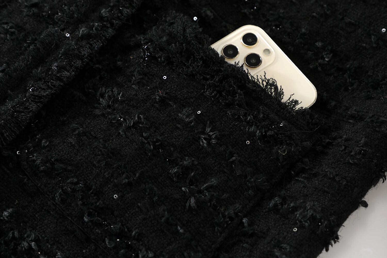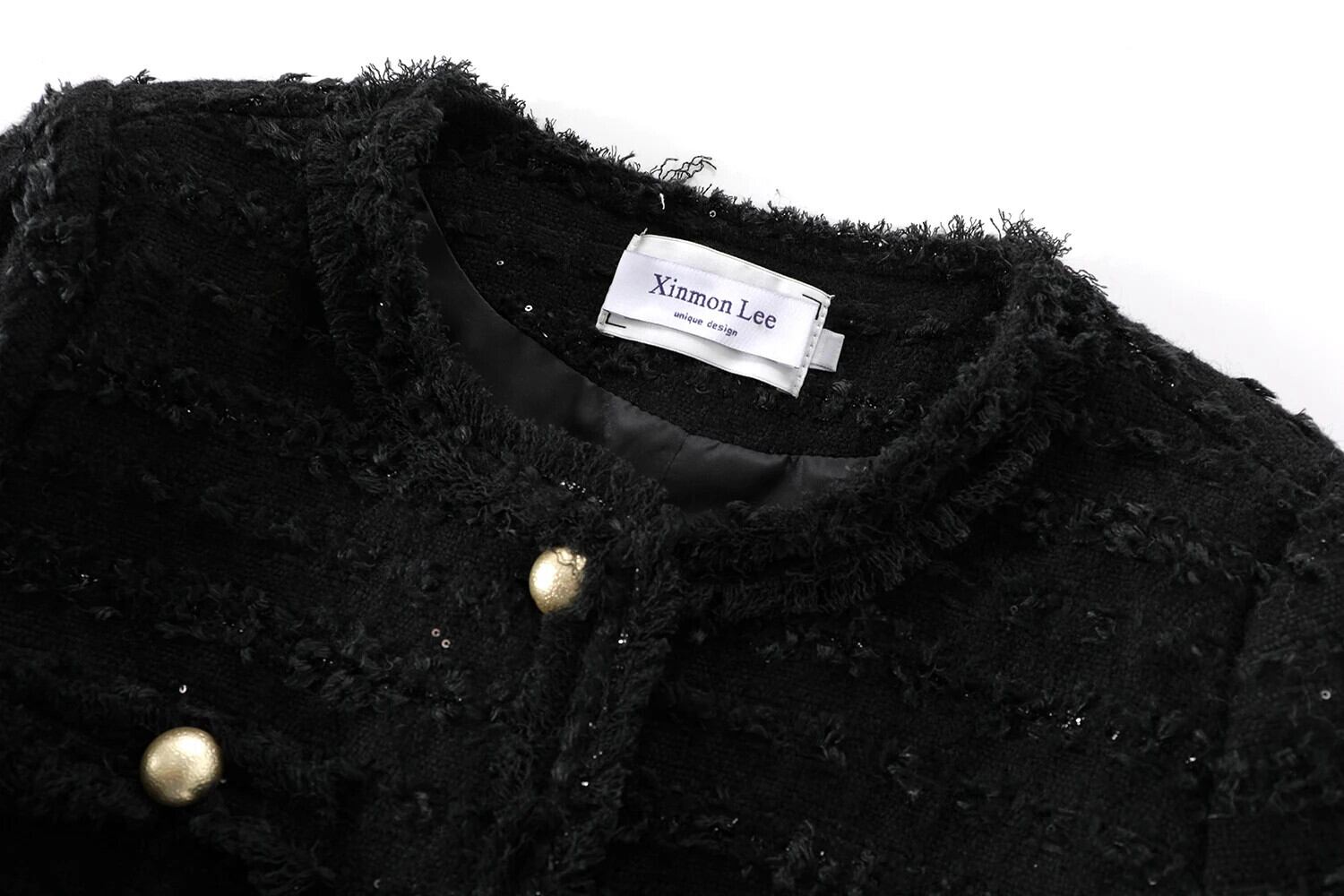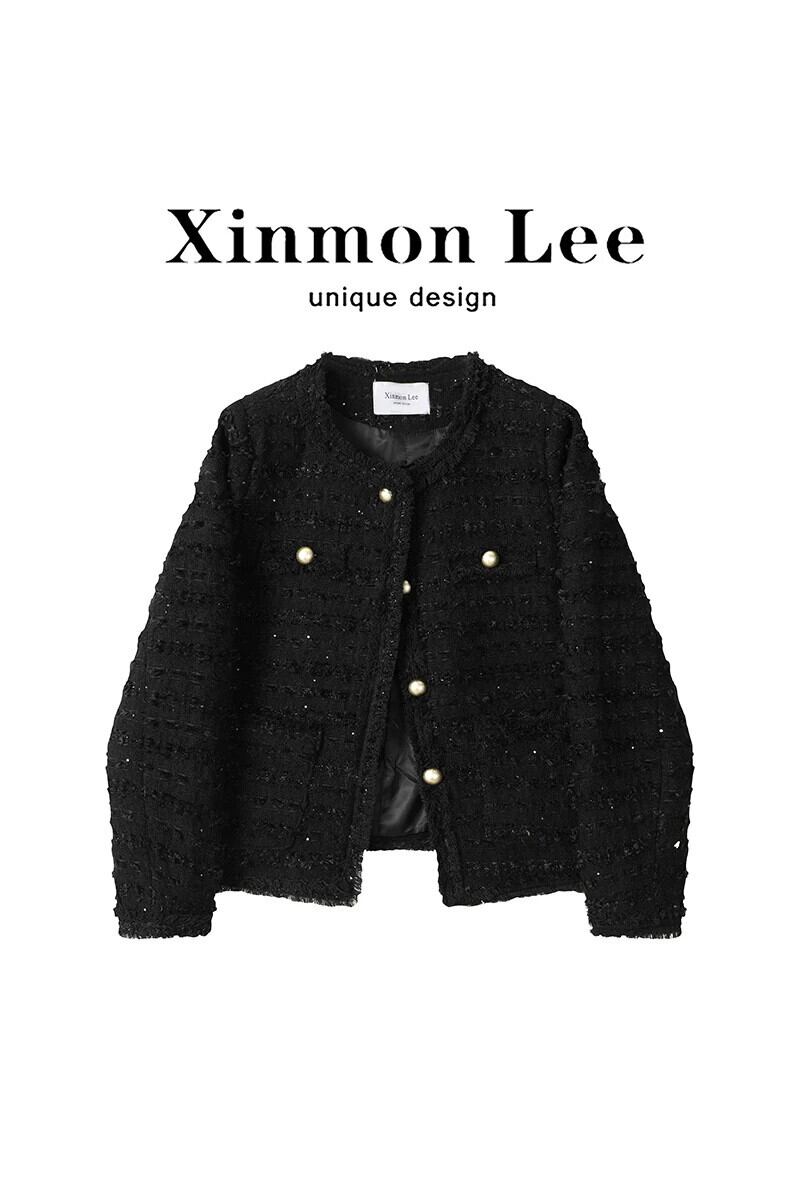 甘いホットガール黒ジャケット秋/冬 O ネックスパンコール通勤長袖ショートジャケット ロング ブラック 大人ガーリー スウィート キュート カジュアル オータム 秋物 ウィンター 冬物 Oネック