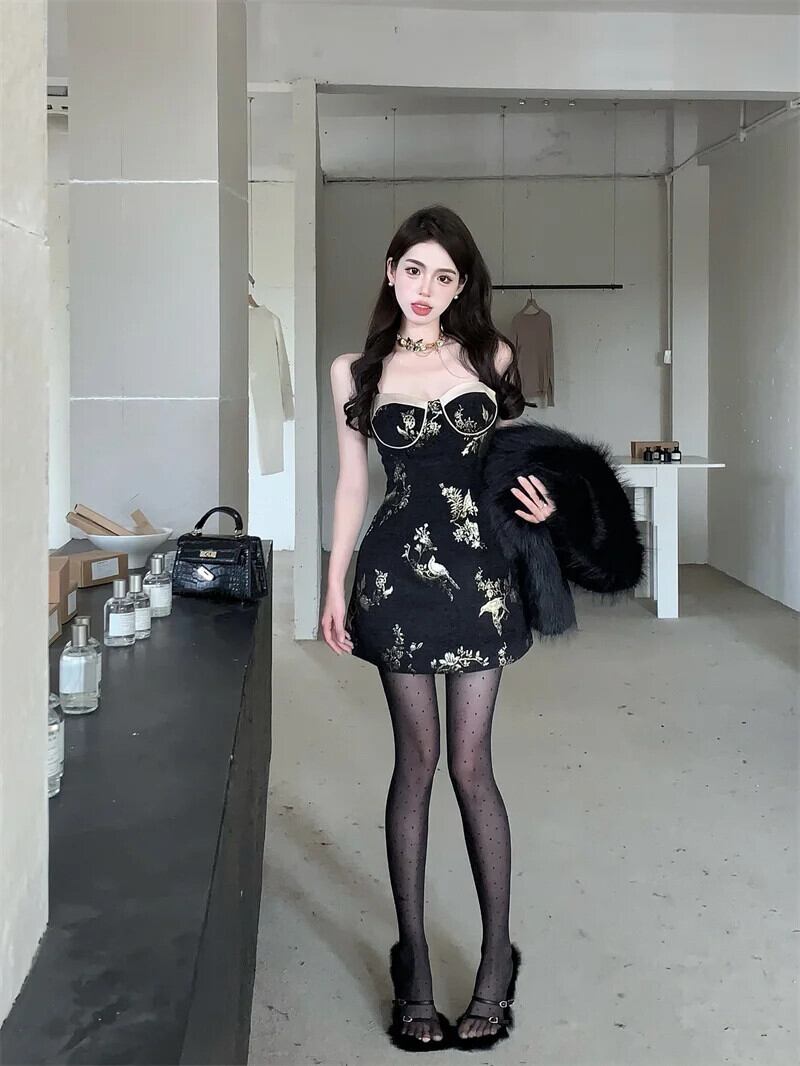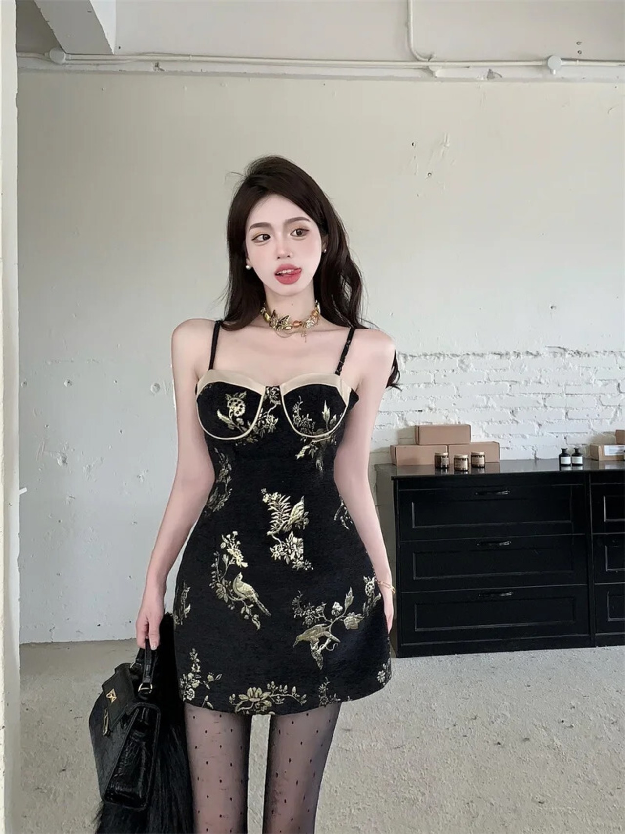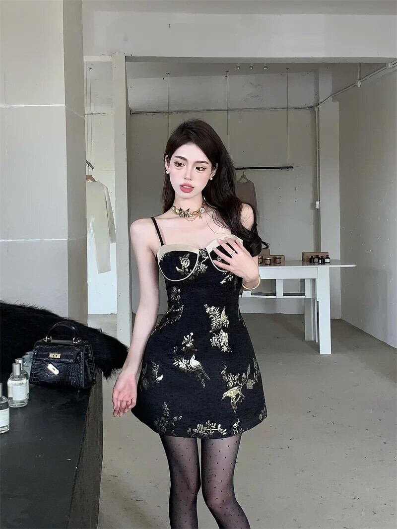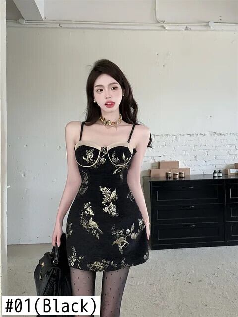 中国風ホットスタンプライト高級ドレス秋スリムフィット A ラインサスペンダードレス オータム 秋物 Aライン
