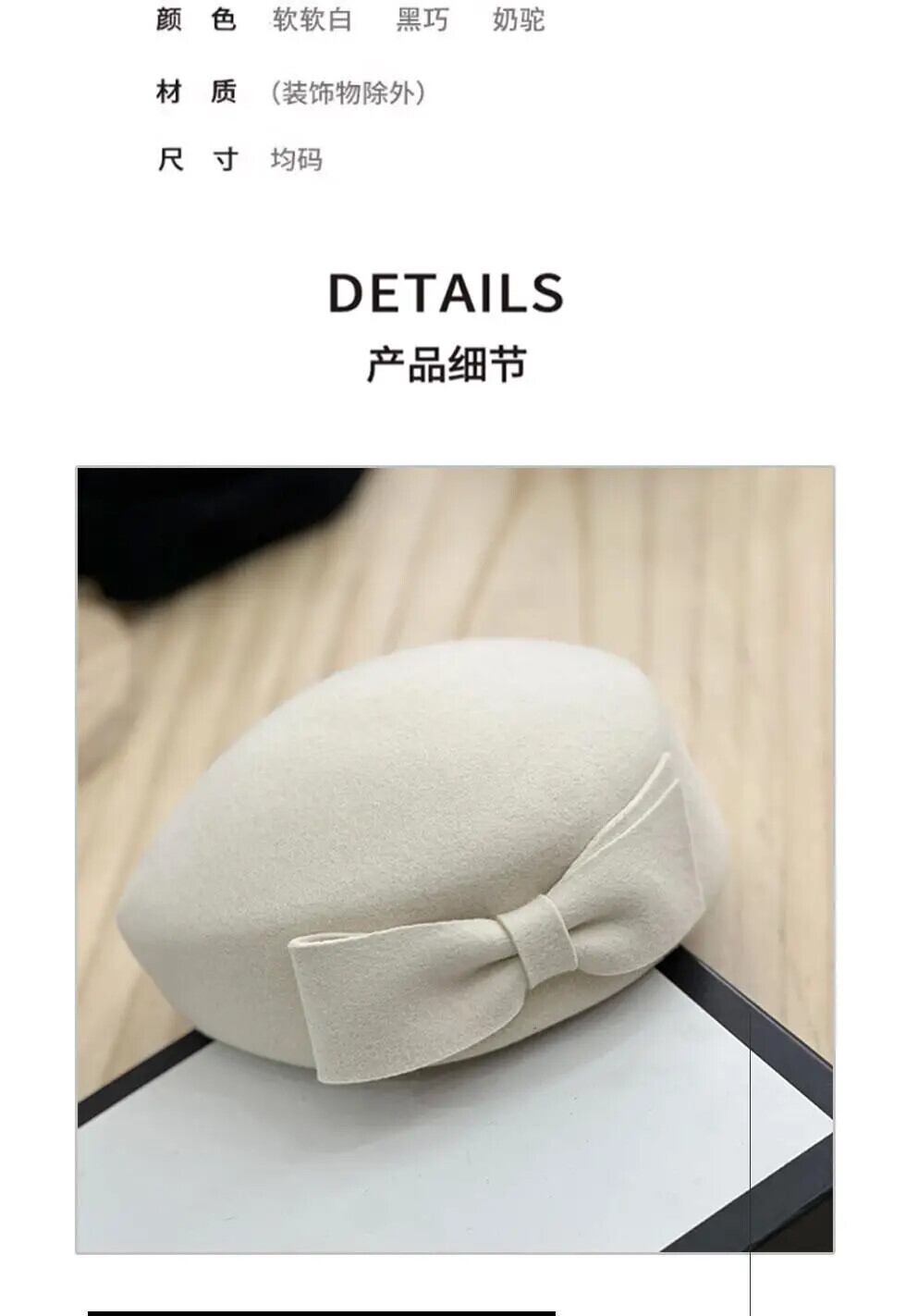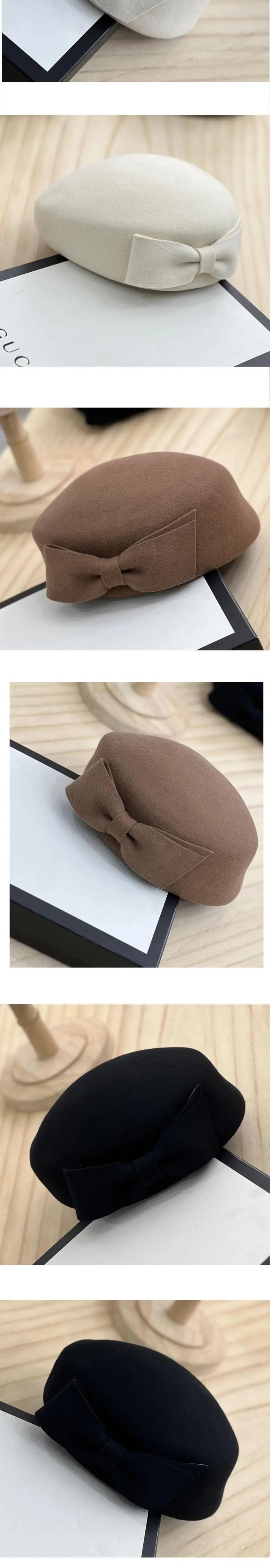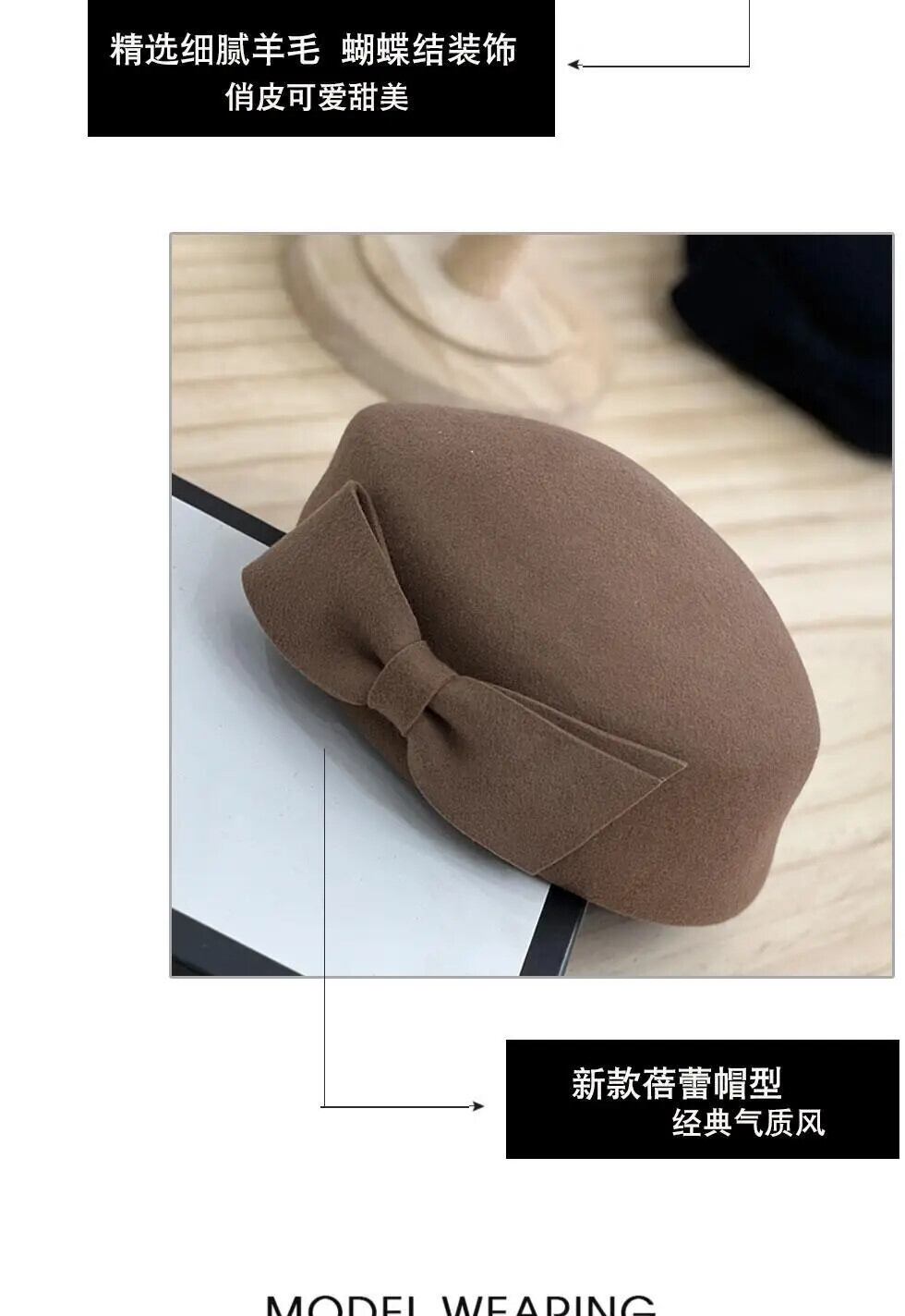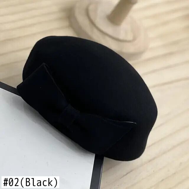 甘いホットガールボウウールベレー帽秋/冬英国スタイルウールフェドーラトレンディアクセサリー リボン 大人ガーリー スウィート キュート カジュアル オータム 秋物 ウィンター 冬物 ベレット ヘアアクセサリー