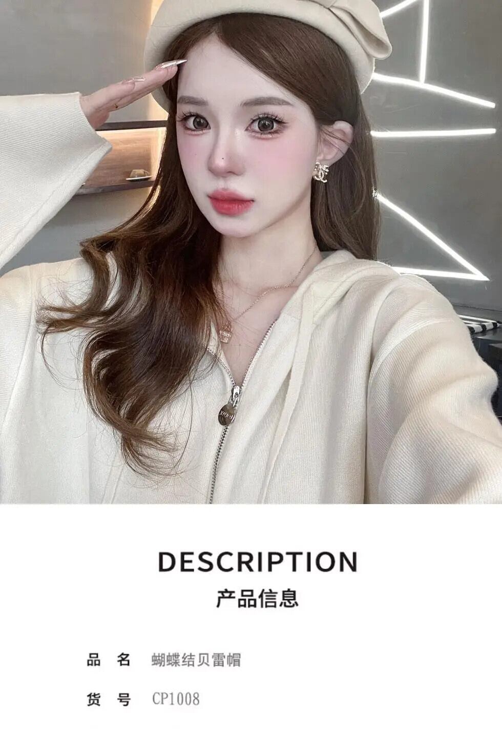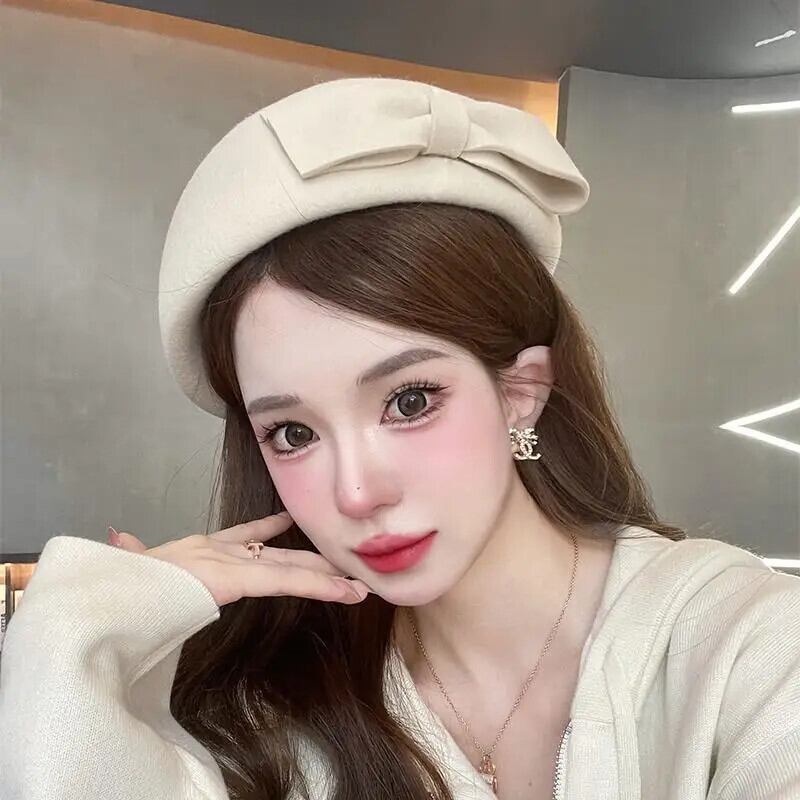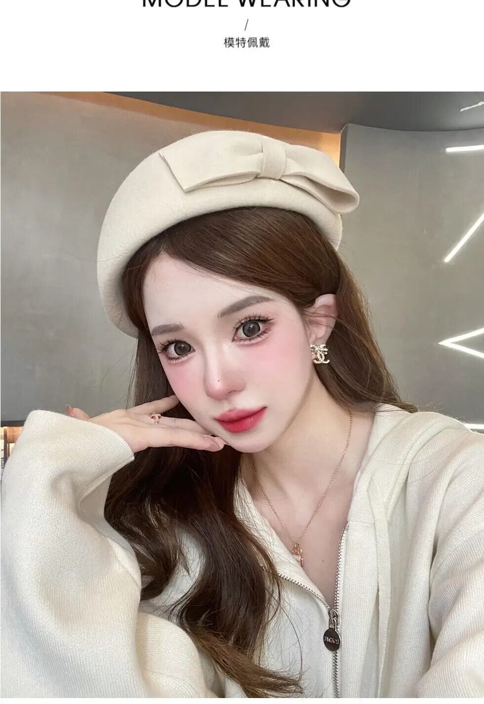 甘いホットガールボウウールベレー帽秋/冬英国スタイルウールフェドーラトレンディアクセサリー リボン 大人ガーリー スウィート キュート カジュアル オータム 秋物 ウィンター 冬物 ベレット ヘアアクセサリー