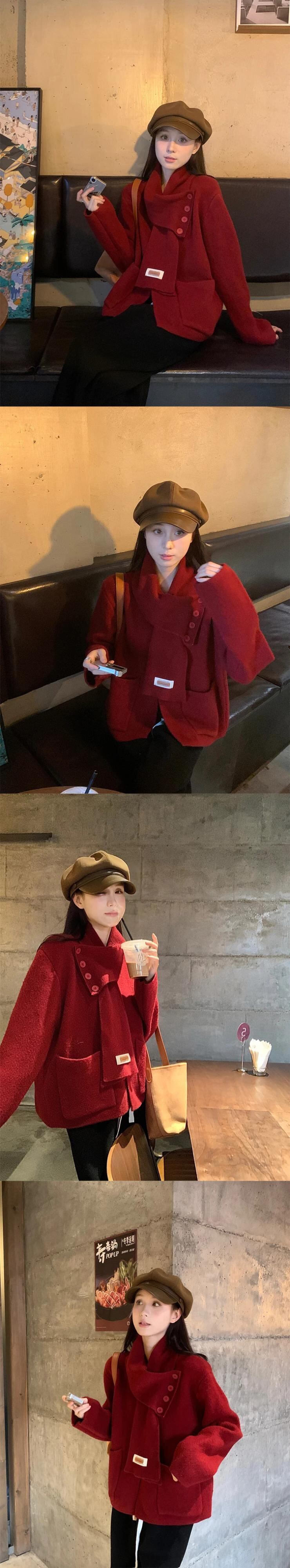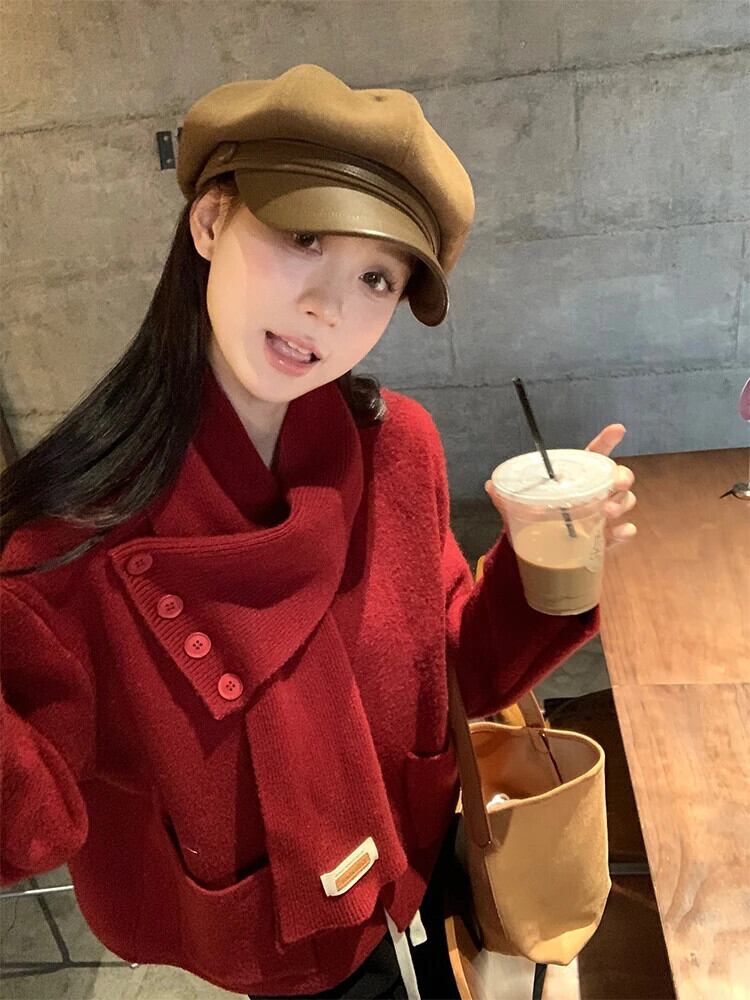 甘いホットガールスカーフ襟ニットカーディガン冬ルーズ長袖ショートセーターコート ロング 大人ガーリー スウィート キュート カジュアル ウィンター 冬物