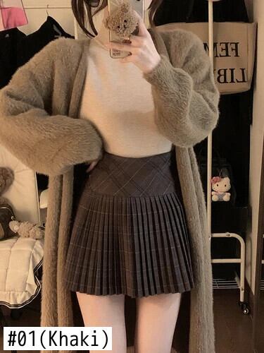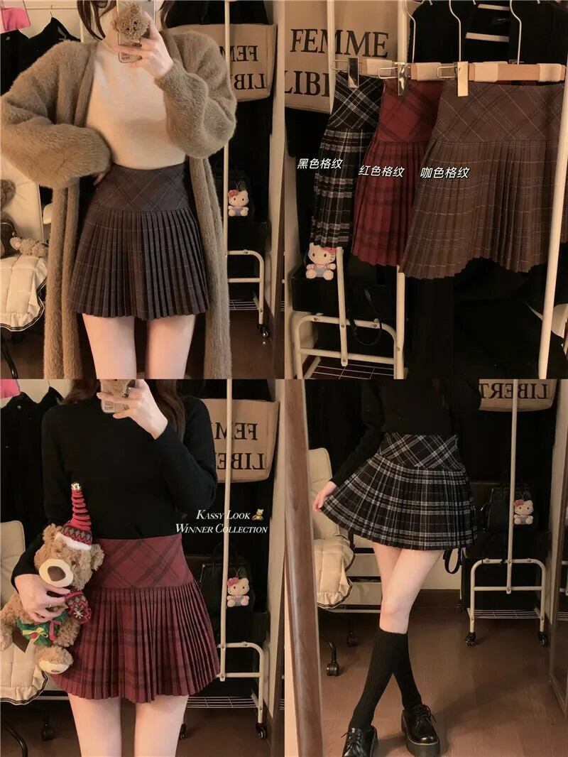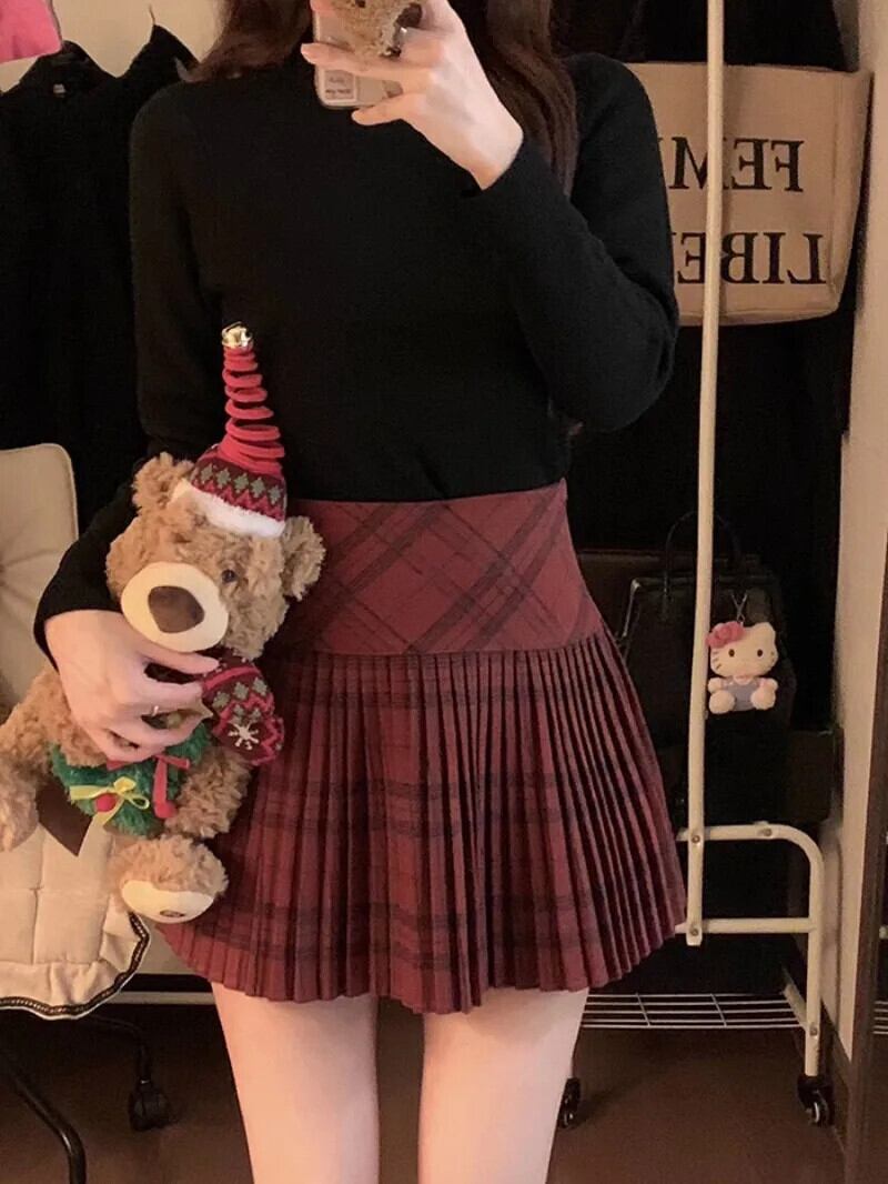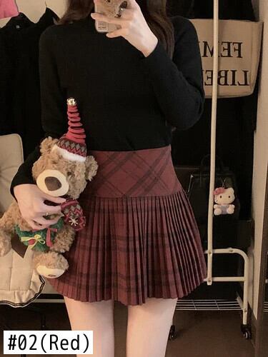 甘いホットガールレトロチェック柄ミニスカート秋/冬プリーツウエスト A ラインショートスカート 大人ガーリー スウィート キュート カジュアル オータム 秋物 ウィンター 冬物 Aライン