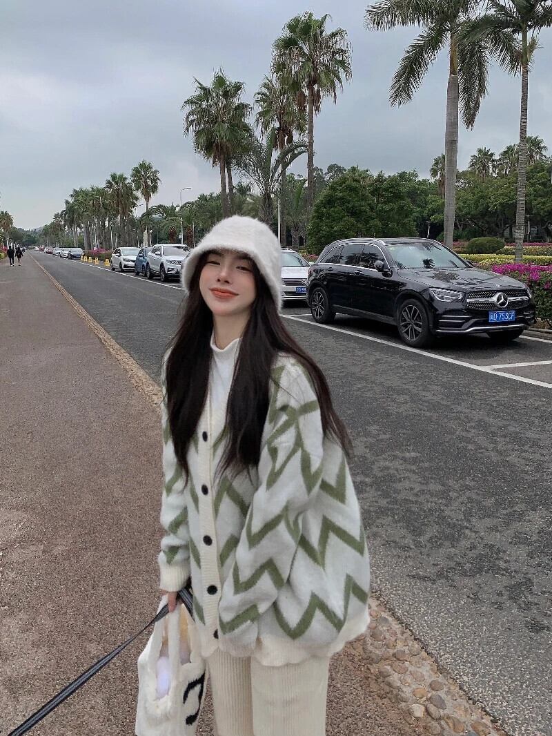 甘いホットガールニットカーディガン秋と冬長袖ルーズセーターコート ロング 大人ガーリー スウィート キュート カジュアル オータム 秋物 ウィンター 冬物