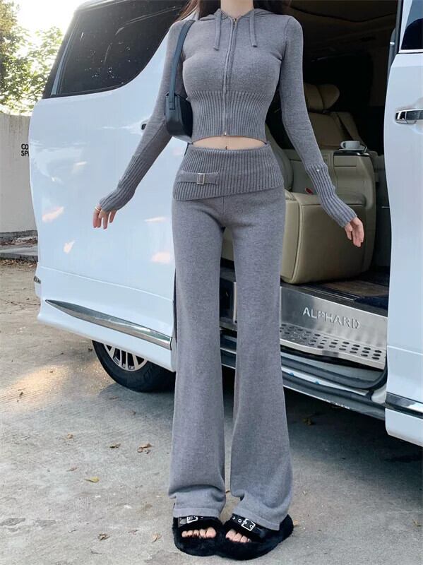 スタイルスイートガールスーツ秋/冬ニットカーディガンウエストニットパンツツーピースセット 大人ガーリー スウィート キュート カジュアル オータム 秋物 ウィンター 冬物