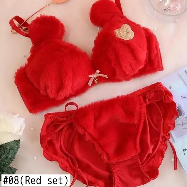ese 甘いホットガール暖かい下着セット冬豪華毛皮ようかわいいアクティブブラジャー三角下着 大人ガーリー スウィート キュート カジュアル ウィンター 冬物
