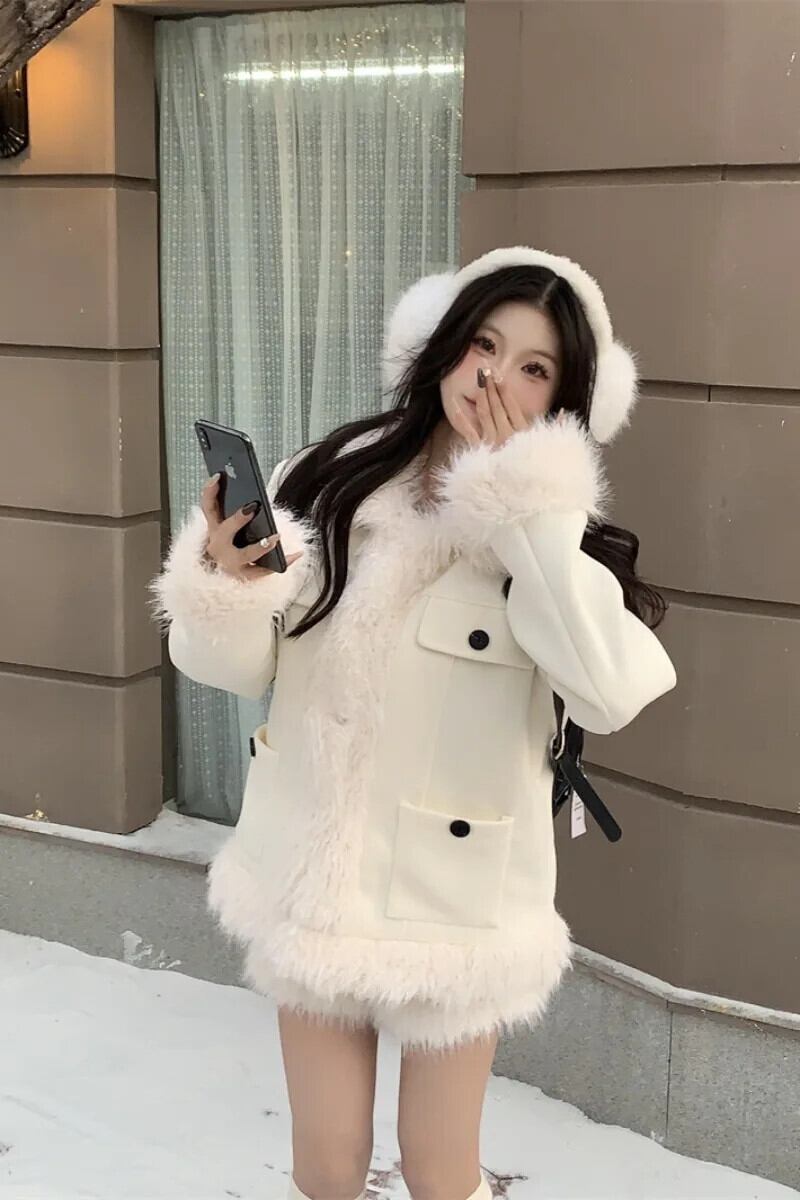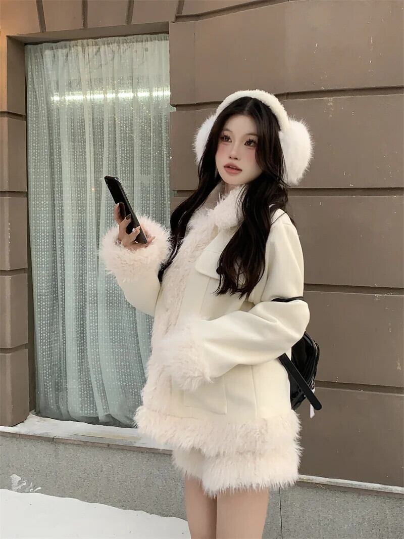 甘いホットガールスーツ冬ターンダウン襟コットンウールジャケットウエストショーツ 2 点セット 大人ガーリー スウィート キュート カジュアル ウィンター 冬物 ブルマー