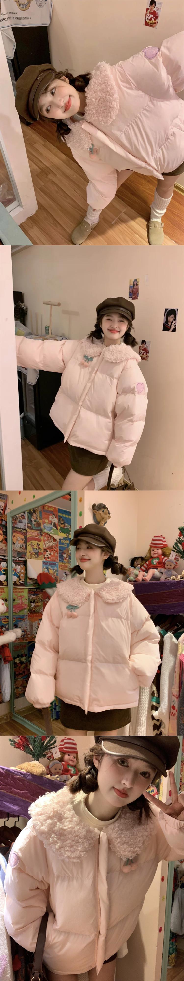 甘い女子ピーターパン襟コットンコート冬かわいいチェリーパネル肥厚コットンジャケット 大人ガーリー スウィート キュート カジュアル ウィンター 冬物