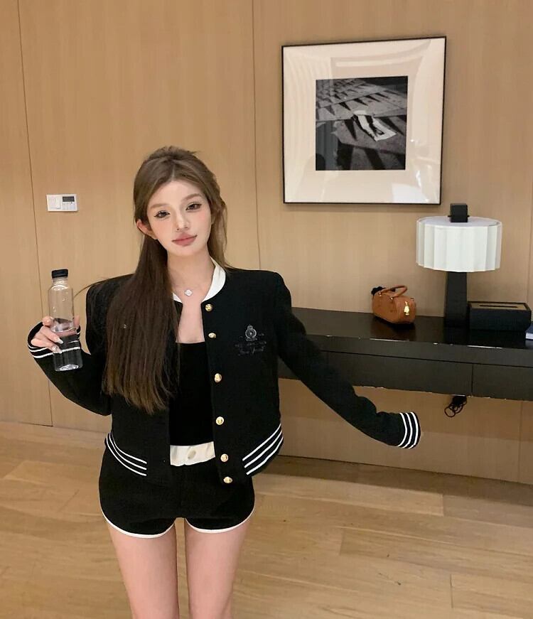 Sweet Girl スーツ レディース 秋 ウール スタンドカラー コントラスト コート ウエスト ショーツ 2点セット 大人ガーリー スウィート キュート カジュアル オータム 秋物 ブルマー