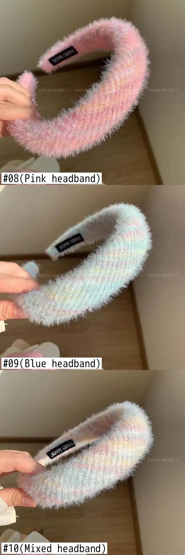 色:01(ヘッドバンド4個),02(ヘアループ4個),03(グリーン2pc),04(ブルー2本),05(ピンク2個),06(ミックス2pc),07(グリーンカチューシャ),08(ピンクのカチューシャ),09(ブルーカチューシャ),10(ミックスヘッドバンド),11(緑のヘアループ),12(ピンクのヘアループ),13(ブルーヘアループ),14(ミックスヘアループ)