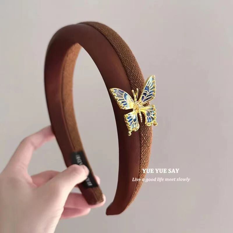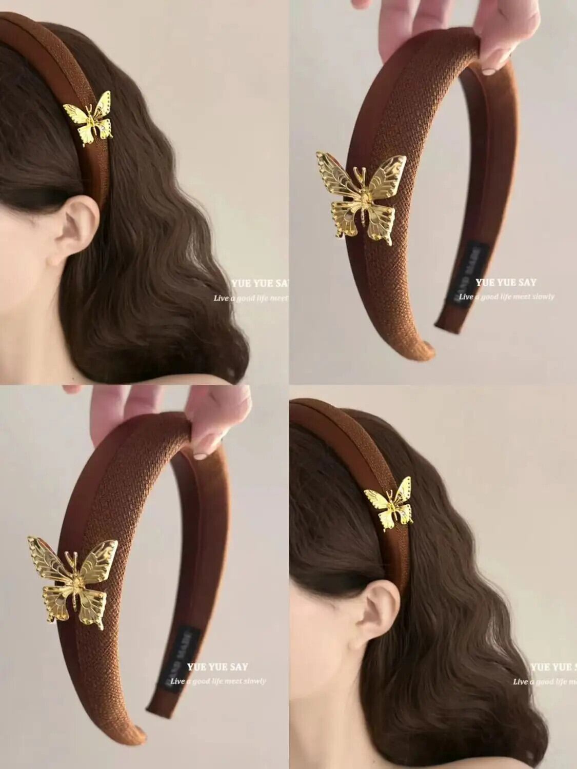 Sweet Girl バタフライサテン織スプライスヘッドバンド秋/冬ワイドエッジヘッドバンドトレンディアクセサリー 大人ガーリー スウィート キュート カジュアル オータム 秋物 ウィンター 冬物 ヘアバンド ヘアアクセサリー