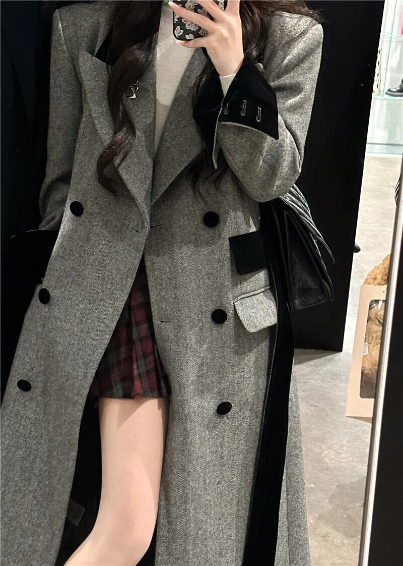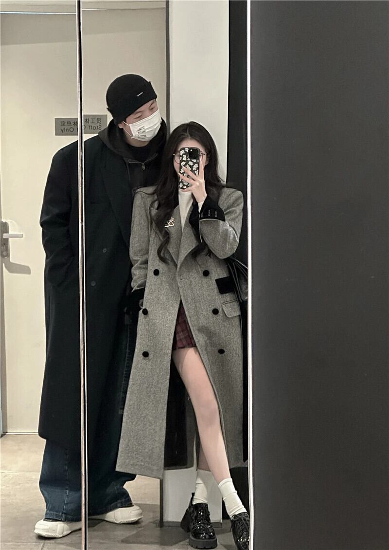 甘いホットガールラペルウールジャケット秋/冬ルーズミッドレングスダブルブレストウールコート 大人ガーリー スウィート キュート カジュアル オータム 秋物 ウィンター 冬物