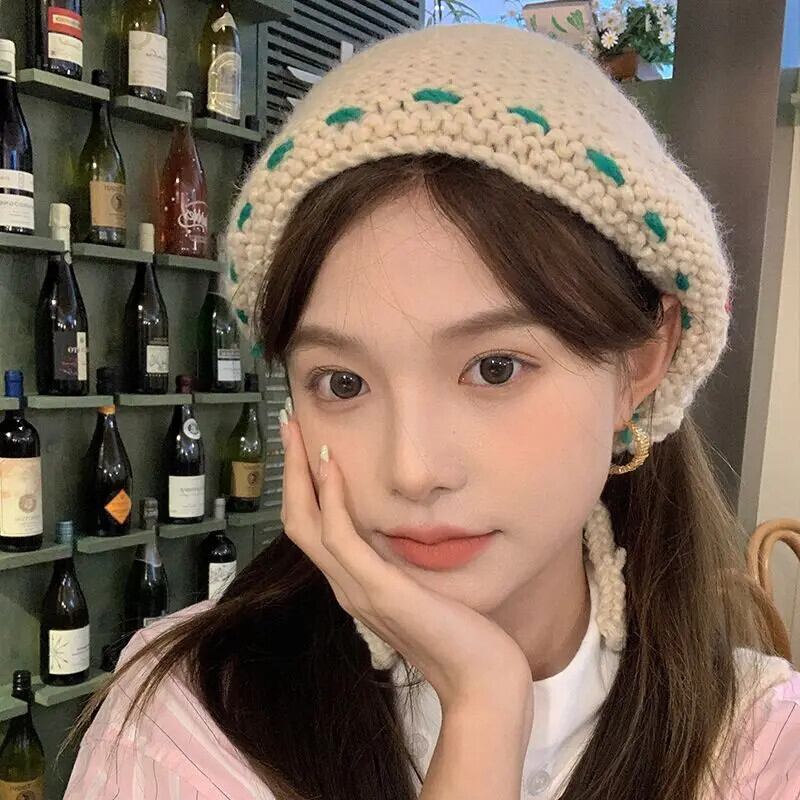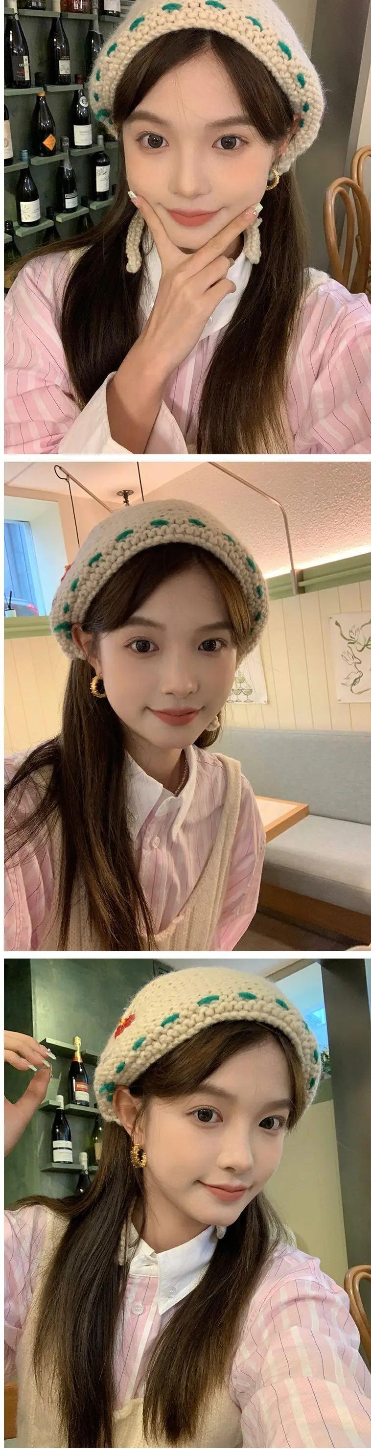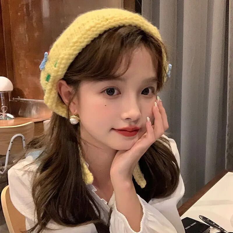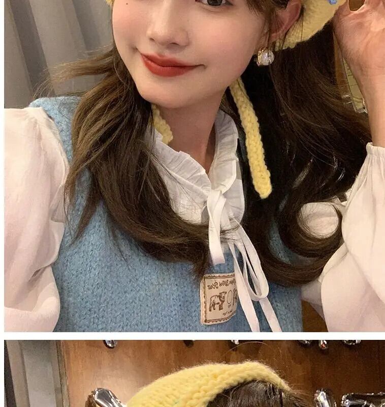 Sweet Girl ニットレースアップ三角スカーフ秋/冬かわいい花ヘッドバンドトレンディアクセサリー 大人ガーリー スウィート キュート カジュアル オータム 秋物 ウィンター 冬物 ヘアバンド ヘアアクセサリー フラワーデザイン